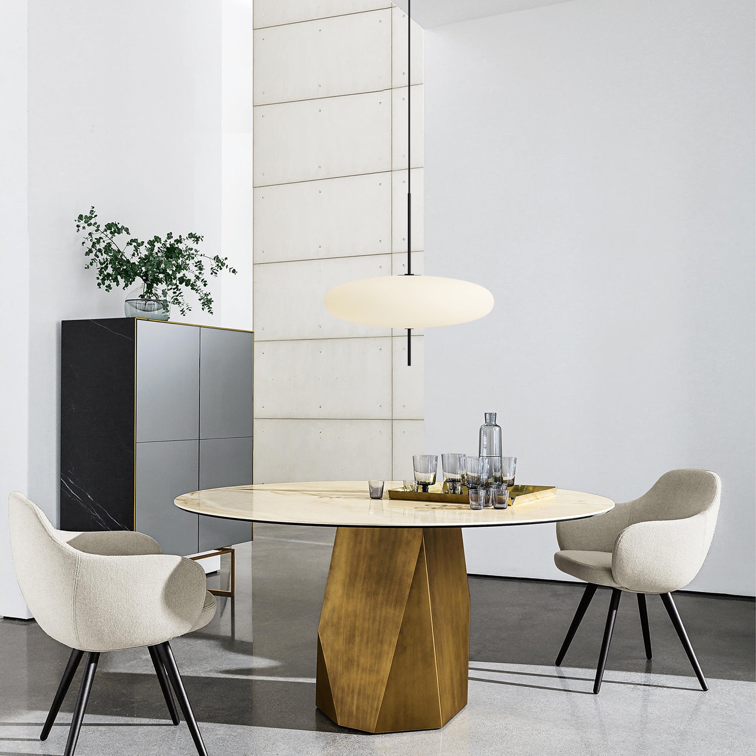 The Astep Model 2065 Pendant features a minimalist design with an opal glass shade and a slender suspension rod. It provides soft and even illumination, suitable for living rooms, dining areas, or bedrooms. The durable construction and clean form make it easy to complement various interior styles.