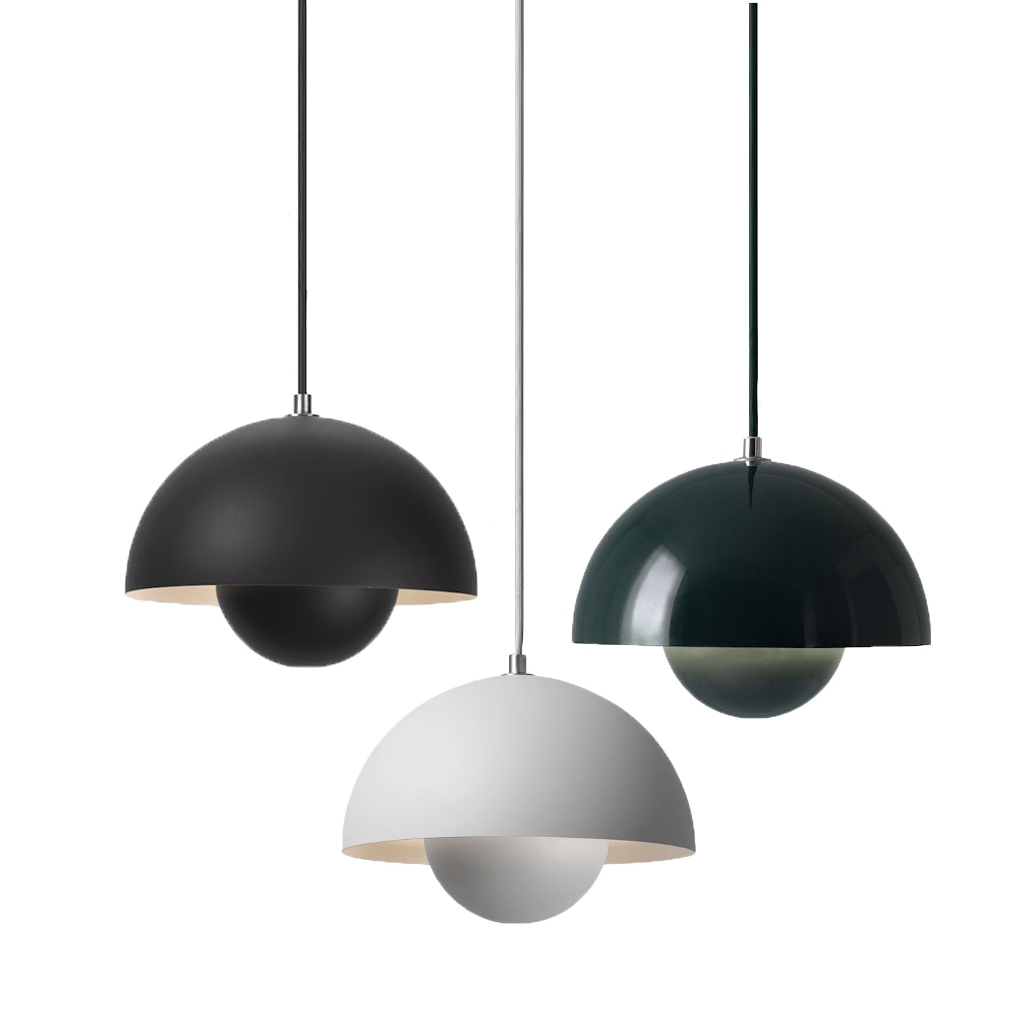 The Bud Pendant Light is a distinguished piece of Danish design, inspired by the 1960s and 70s and symbolizing peace and romance. Its semi-circular lampshade, shaped like a flower pot, cleverly hides the light source inside, producing a fine line of light. When lit, it reveals a soft halo that fosters a calm and gentle atmosphere. This minimalist design balances simplicity with refined elegance, making it a timeless addition to any interior.