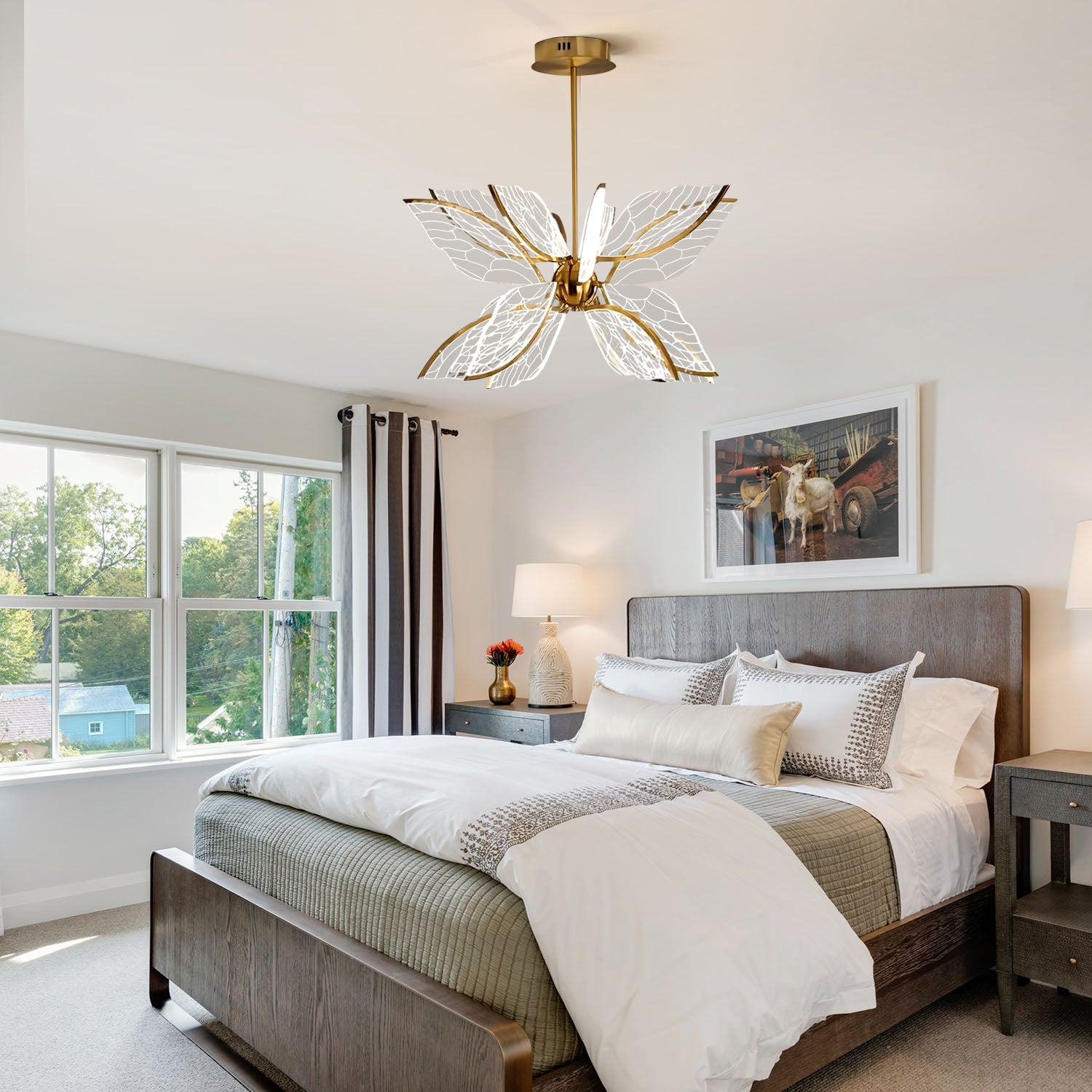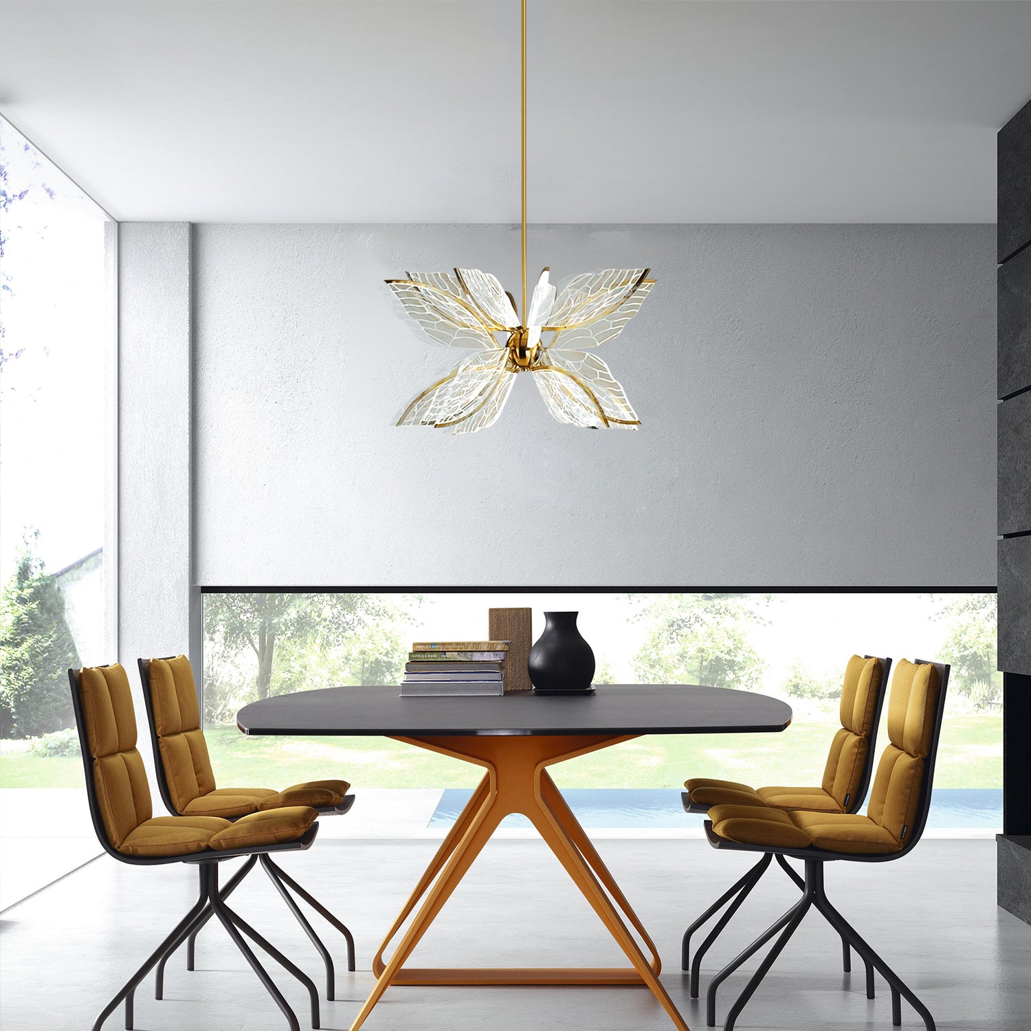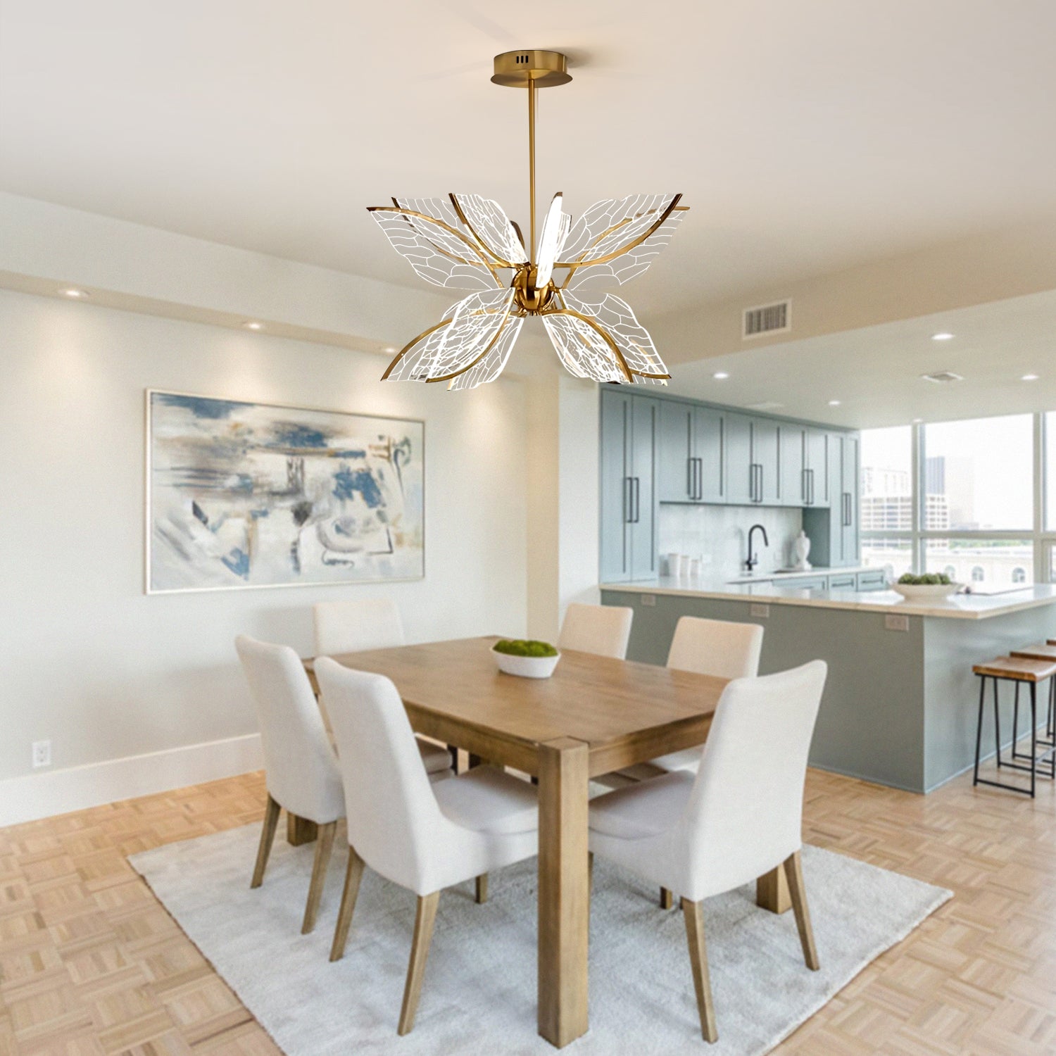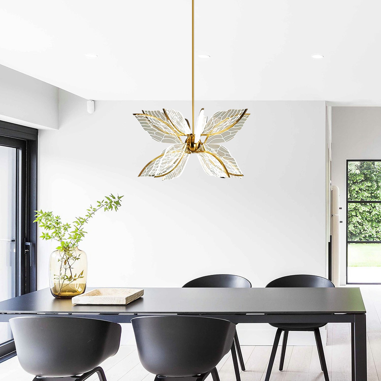 The Butterfly Wings Pendant features a design inspired by butterfly wings, with a balanced structure that provides soft illumination. Made with a metal frame and decorative elements, it is suitable for placement in living rooms, dining areas, or bedrooms. Its appearance blends with different interior styles and works well for general or accent lighting.