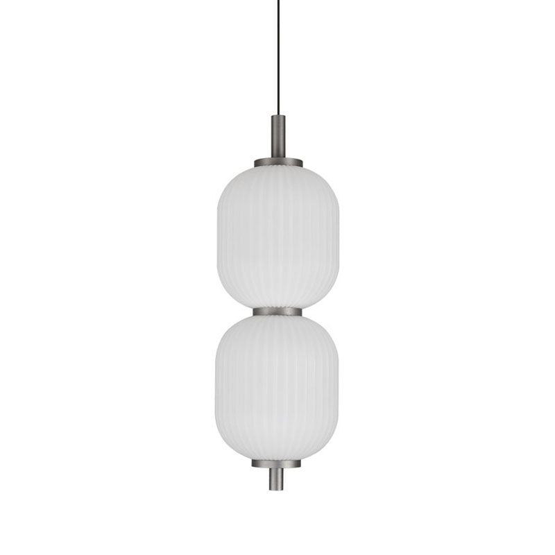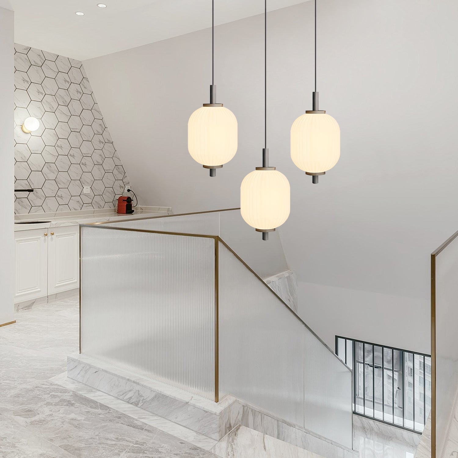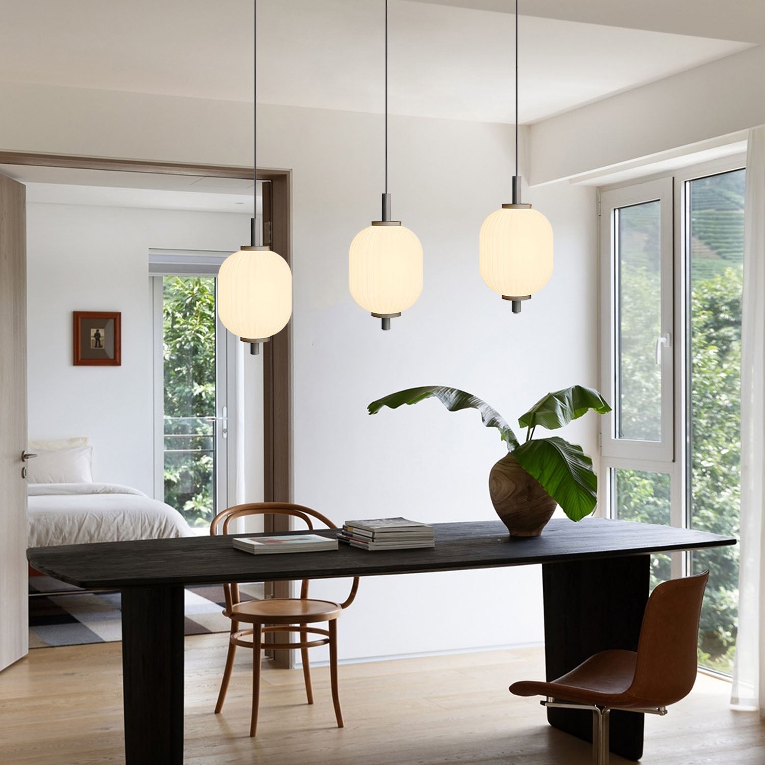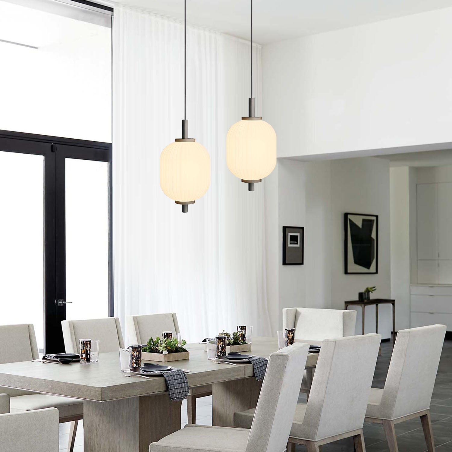 The Candied Haws Pendant breaks with traditional pendant design with its striking organic geometry. Paired with its majestic matte black metal frame, the textured opalescent glass shade-engraved with dramatic vertical lines-creates an enchanting light pattern that transforms any room into a gallery-worthy space.