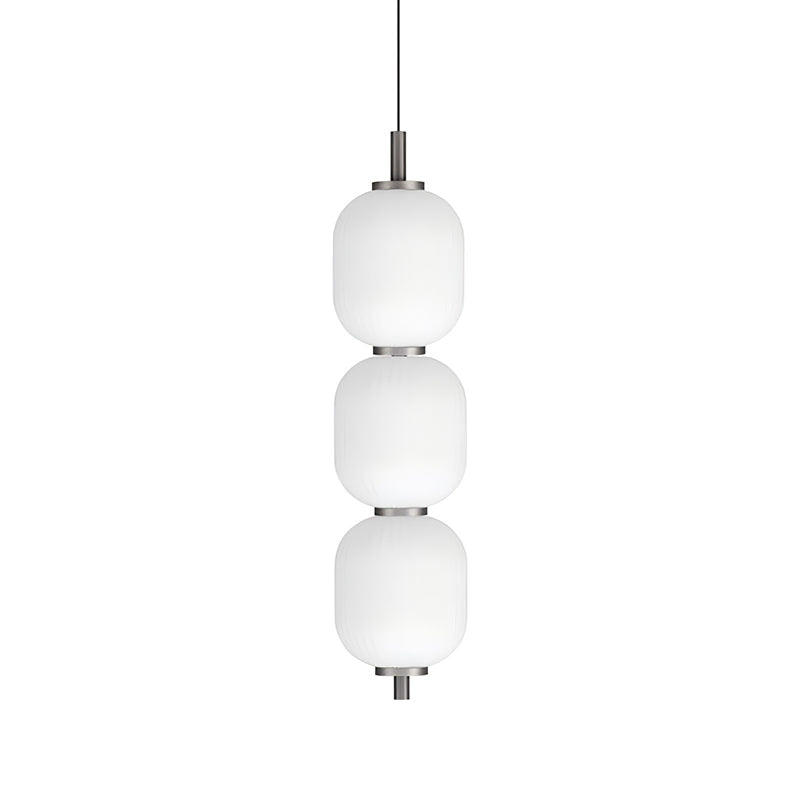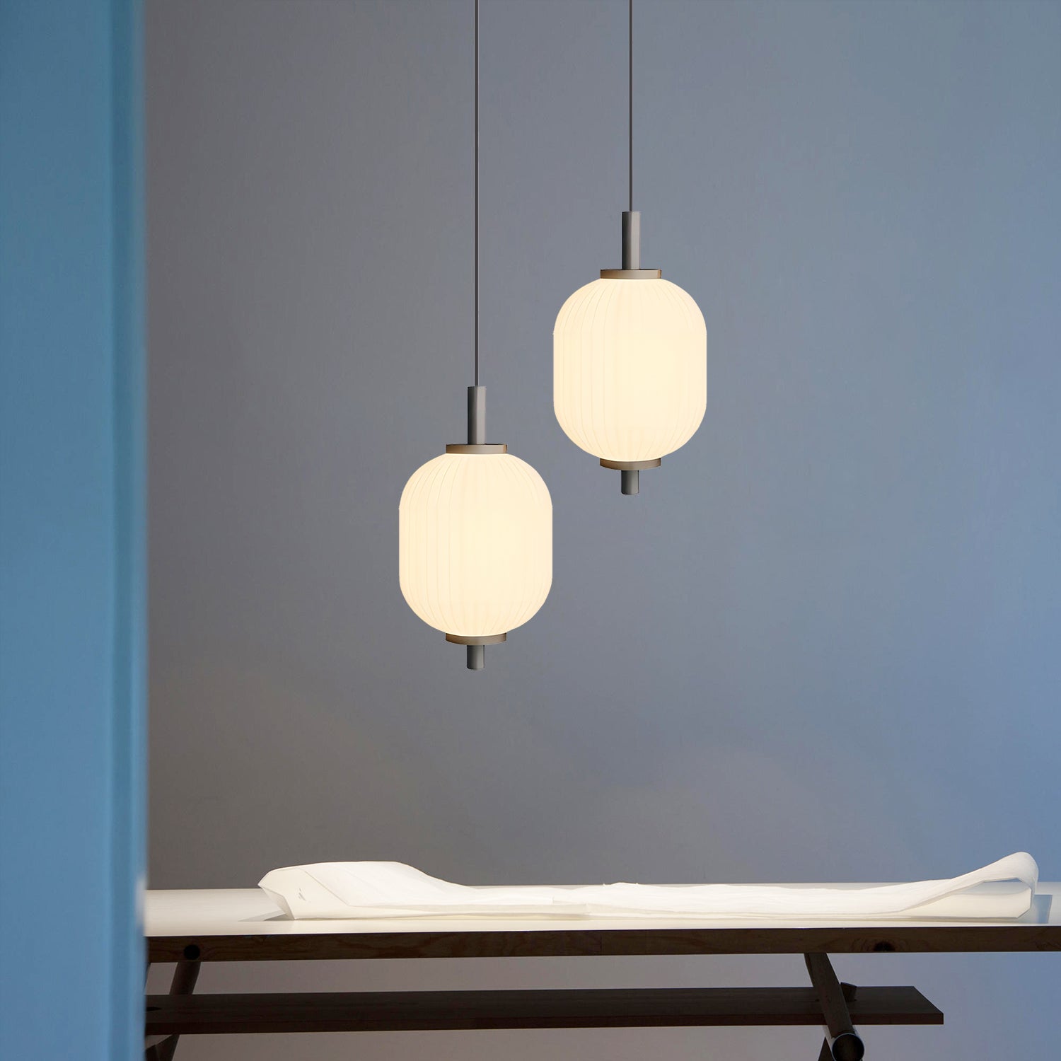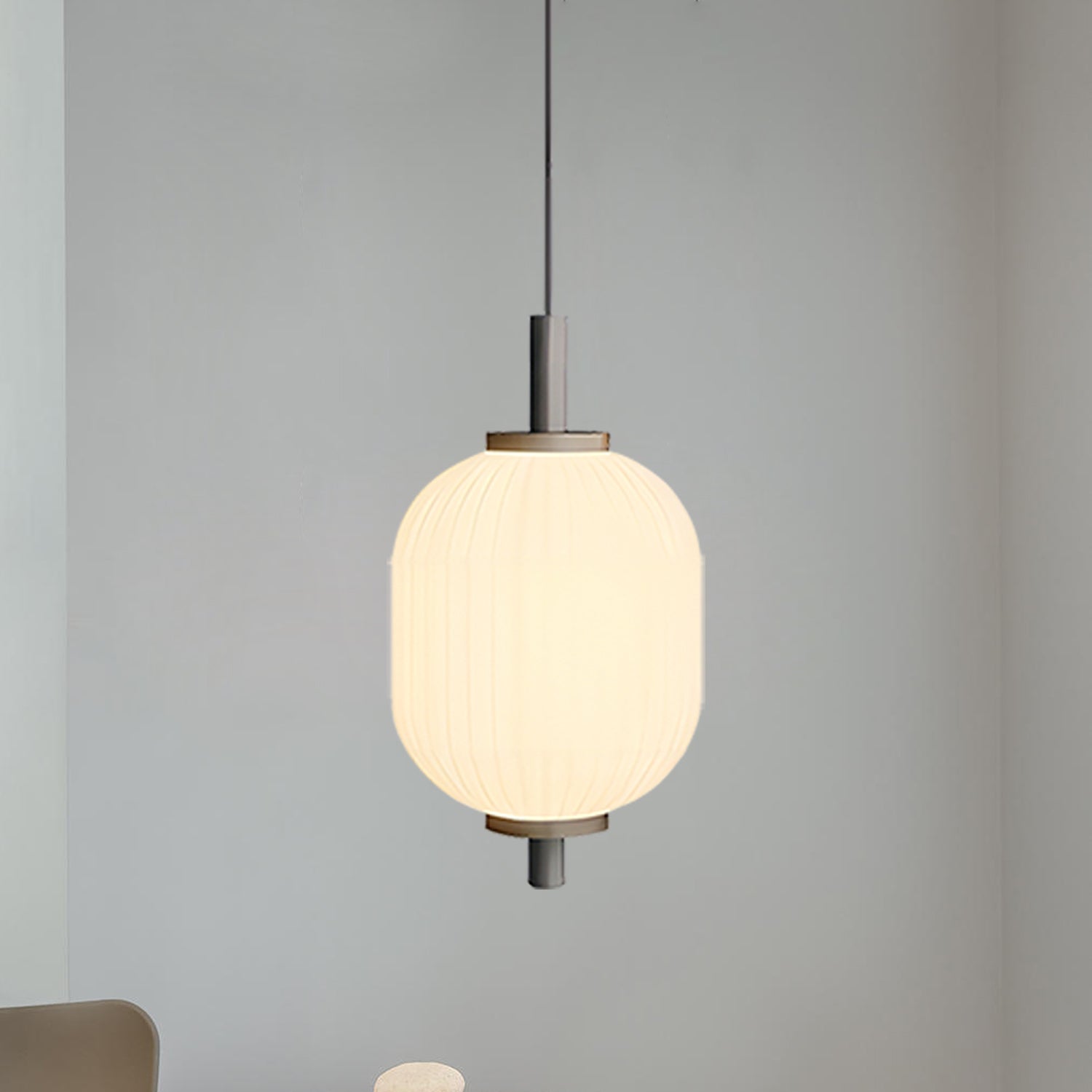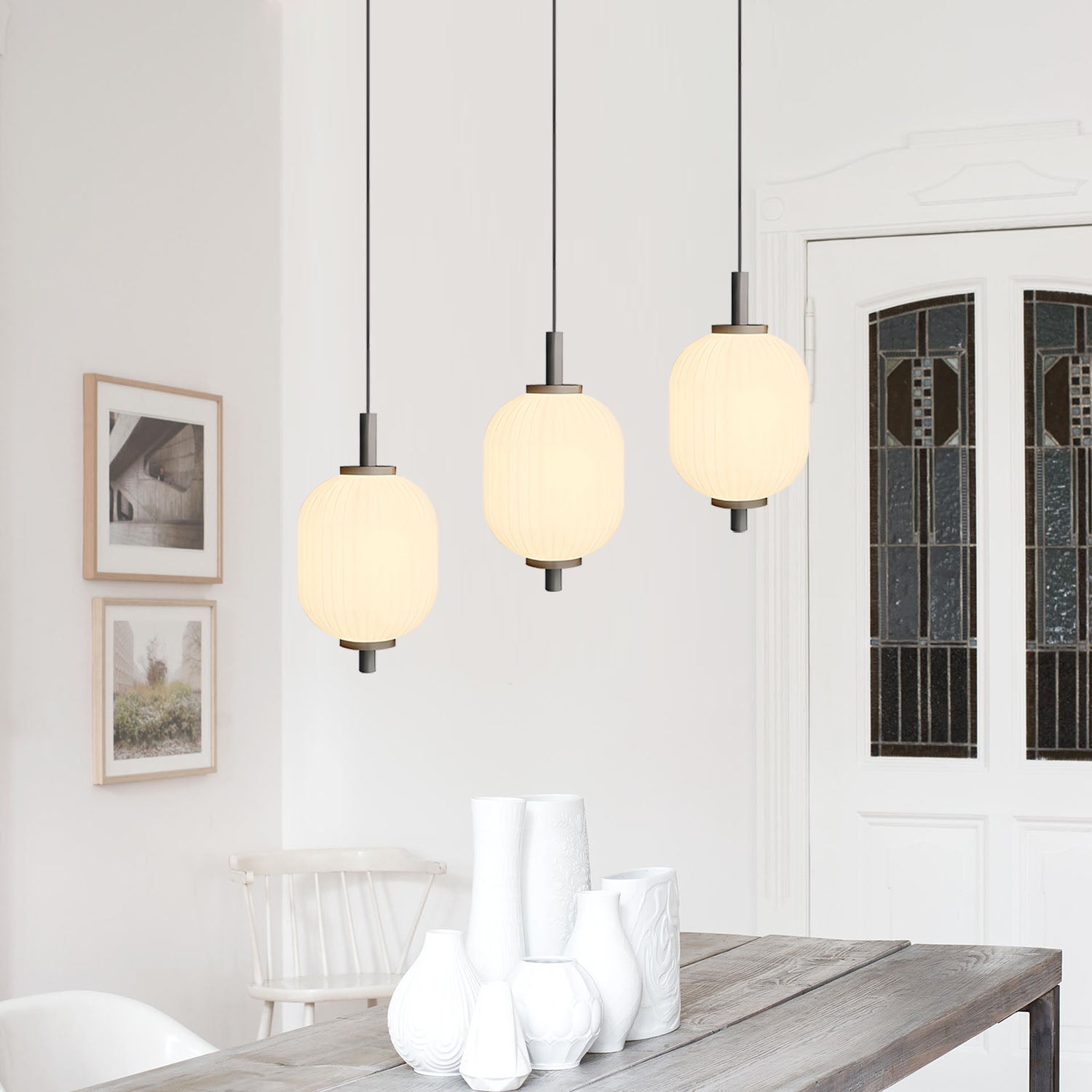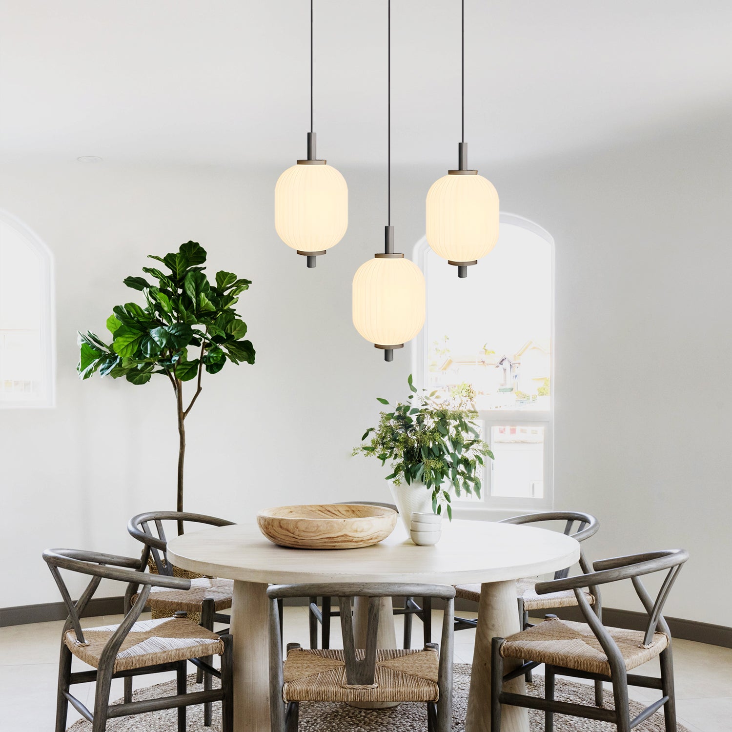 The Candied Haws Pendant breaks with traditional pendant design with its striking organic geometry. Paired with its majestic matte black metal frame, the textured opalescent glass shade-engraved with dramatic vertical lines-creates an enchanting light pattern that transforms any room into a gallery-worthy space.