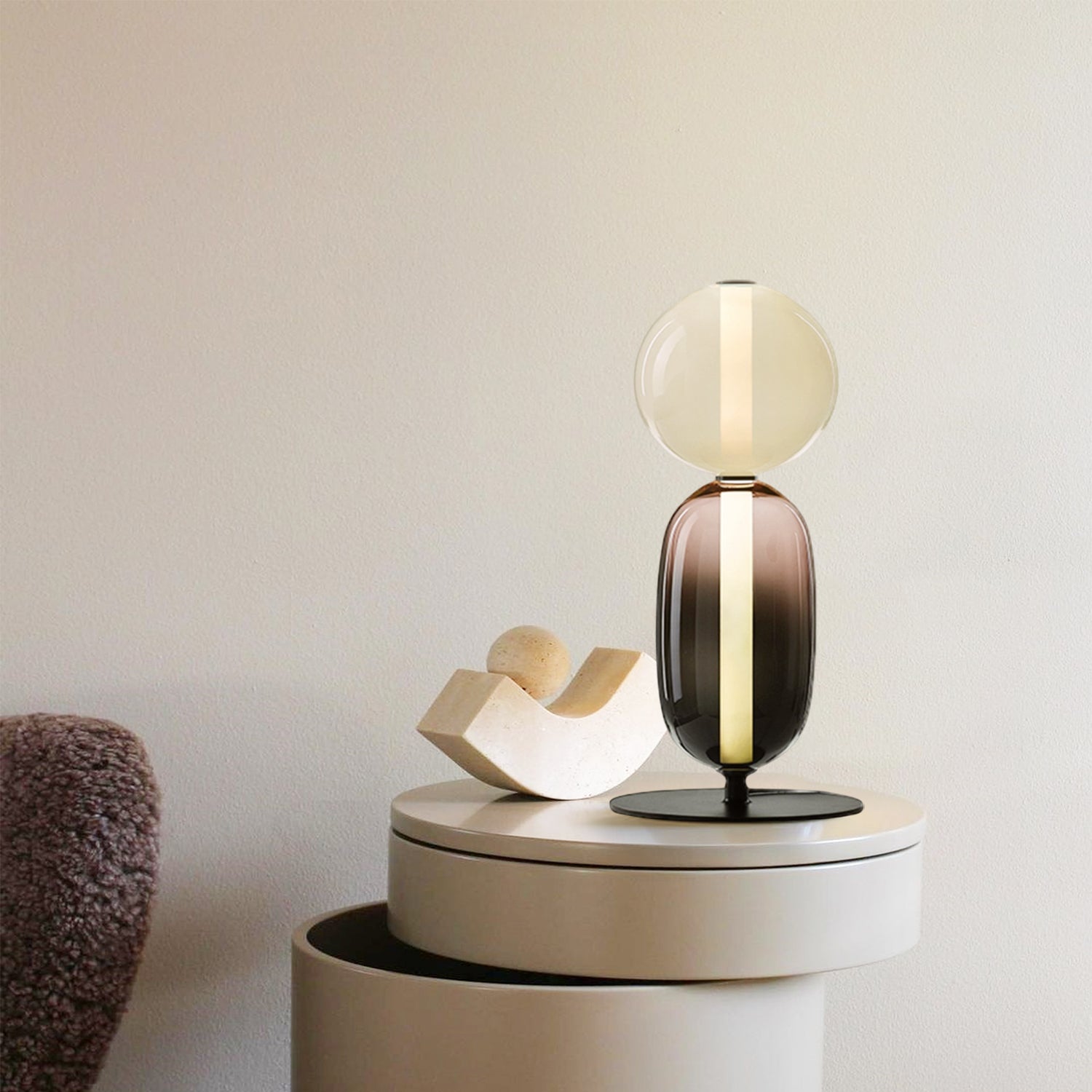 The Candy Pebble Table Lamp features a playful combination of glass shapes in warm tones, creating a soft and balanced light effect. Each glass piece is crafted with smooth curves, giving the lamp a unique sculptural appearance. Suitable for living rooms, bedrooms, or study areas, it adds a gentle decorative touch to any space.