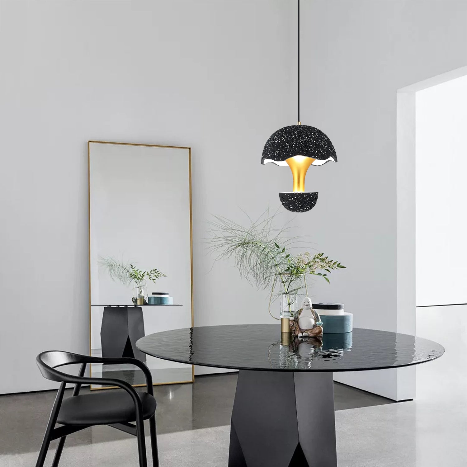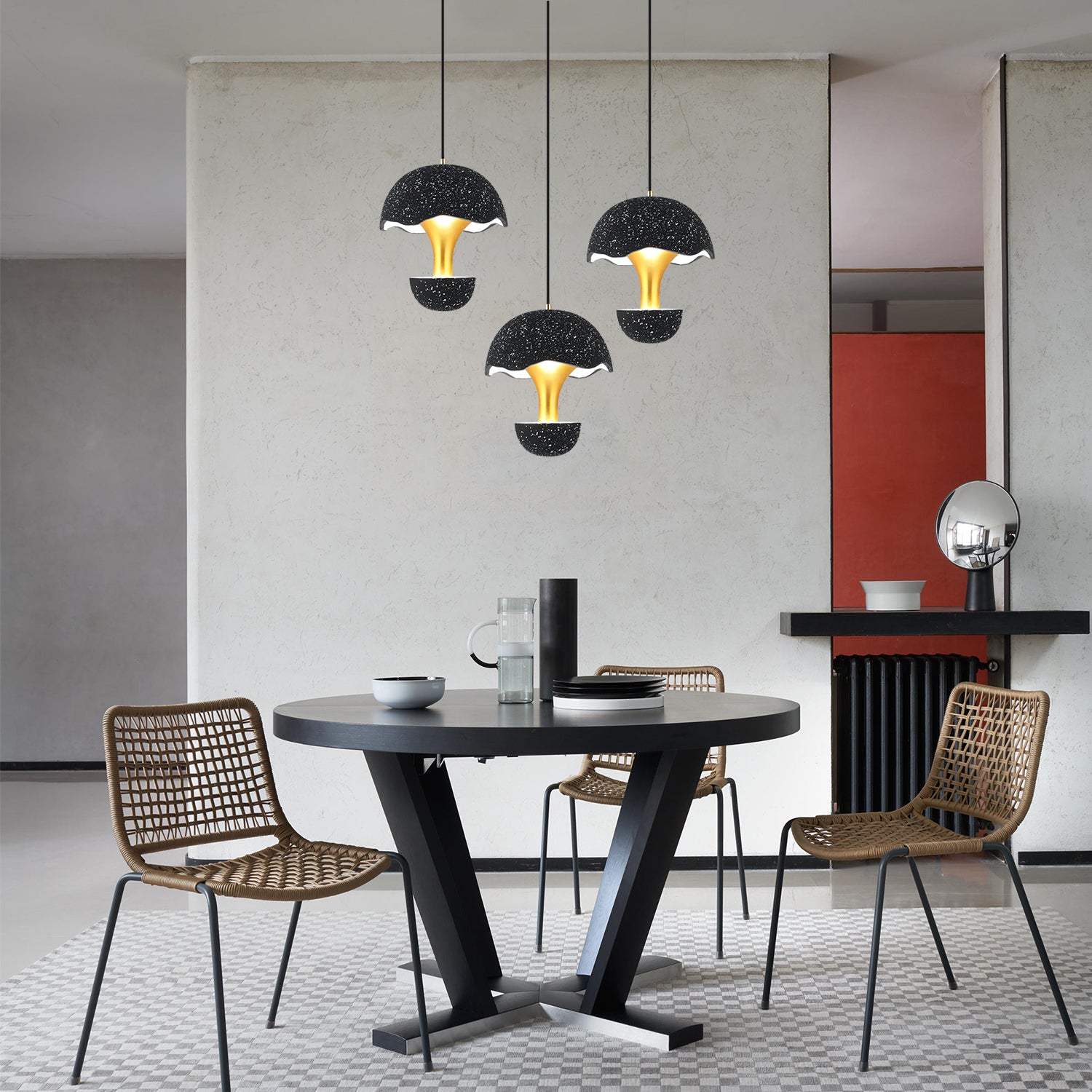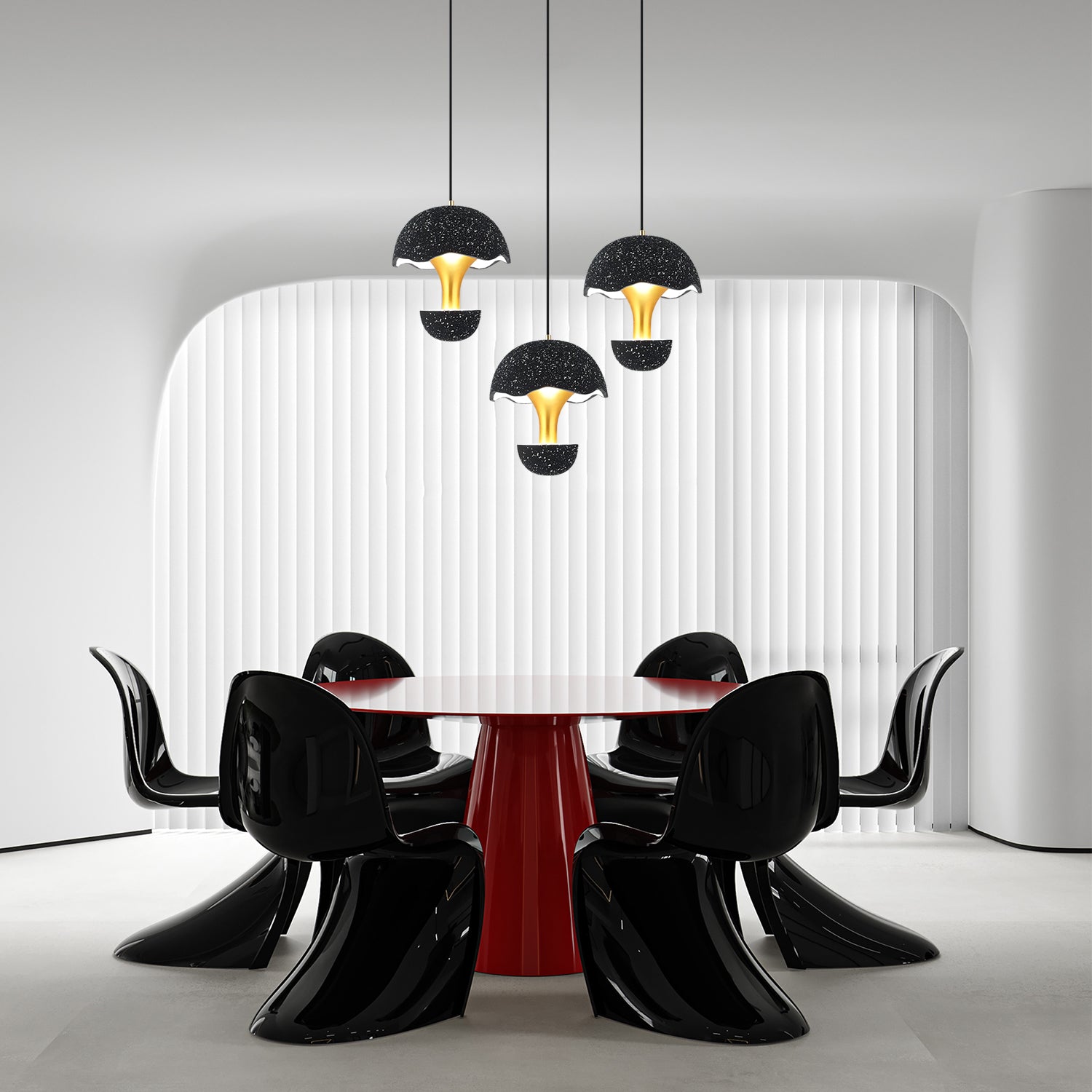 The Cement Mushroom Pendant features a curved design crafted from cement, combining simplicity with a striking presence. Its minimalist form highlights the essence of space, emphasizing natural beauty while providing straightforward illumination that enhances the warmth of any room.