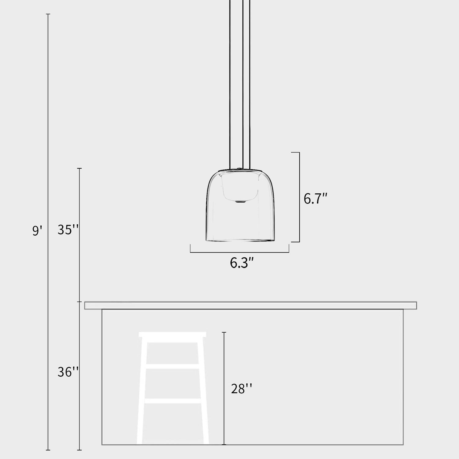 The Clifton Glass Pendant Light features a cylindrical glass shade suspended by a black metal cable. The shade is constructed from clear glass with smooth surface finishing. The transparent glass shade allows direct downward light distribution when illuminated. Suitable for installation in residential kitchens, dining areas, or commercial spaces.