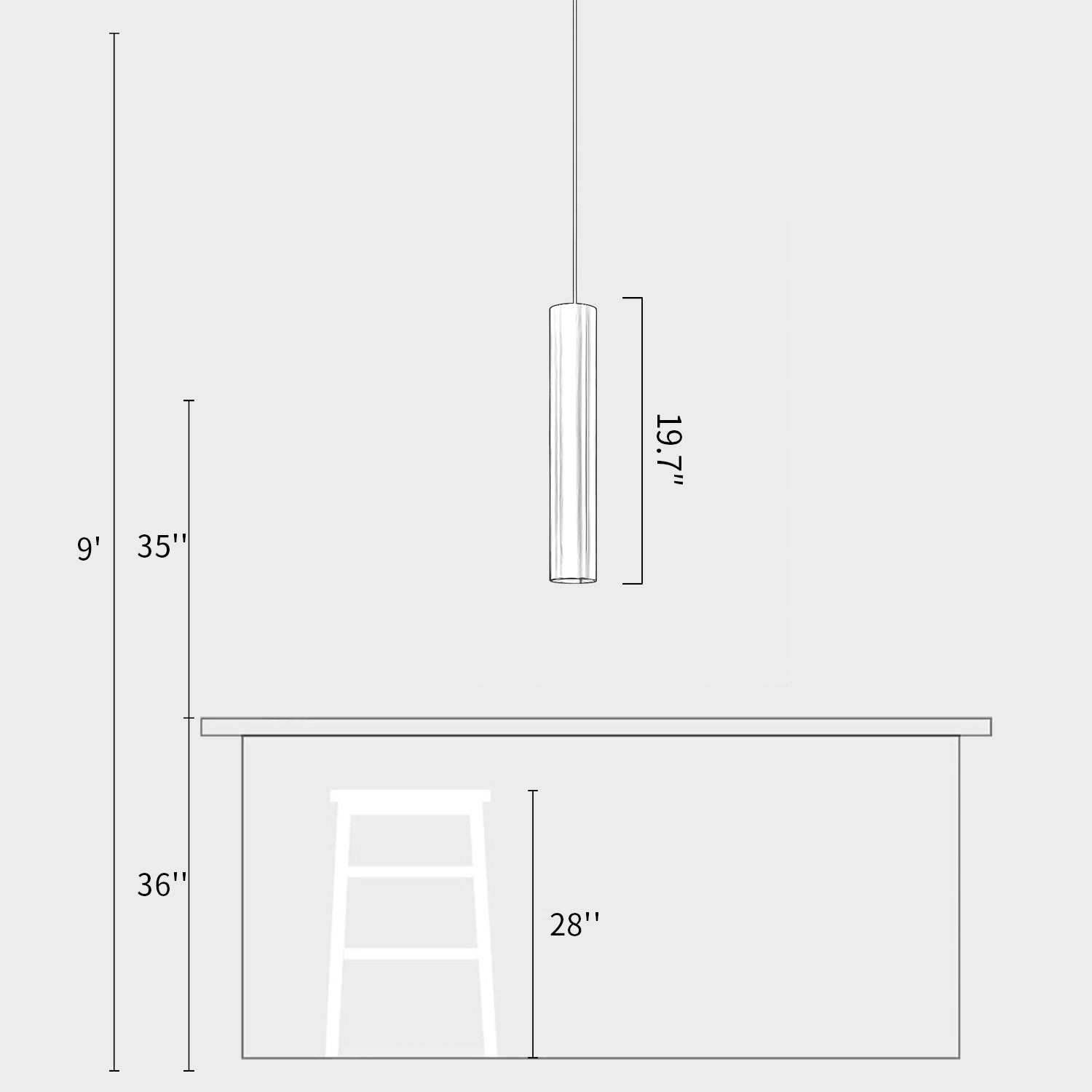 We provide 150 cm / 59 inches of hanging wire. It can be extended upon request.