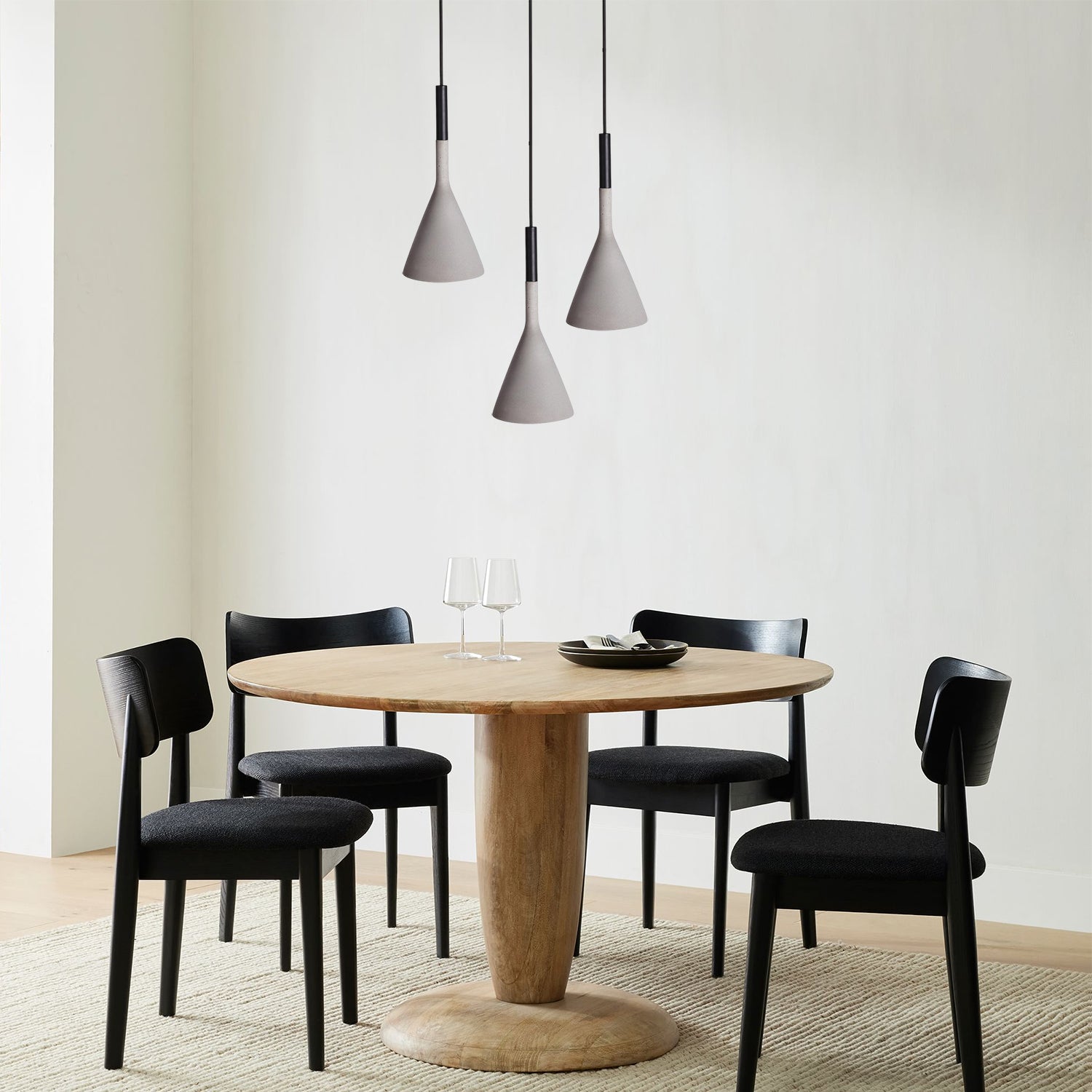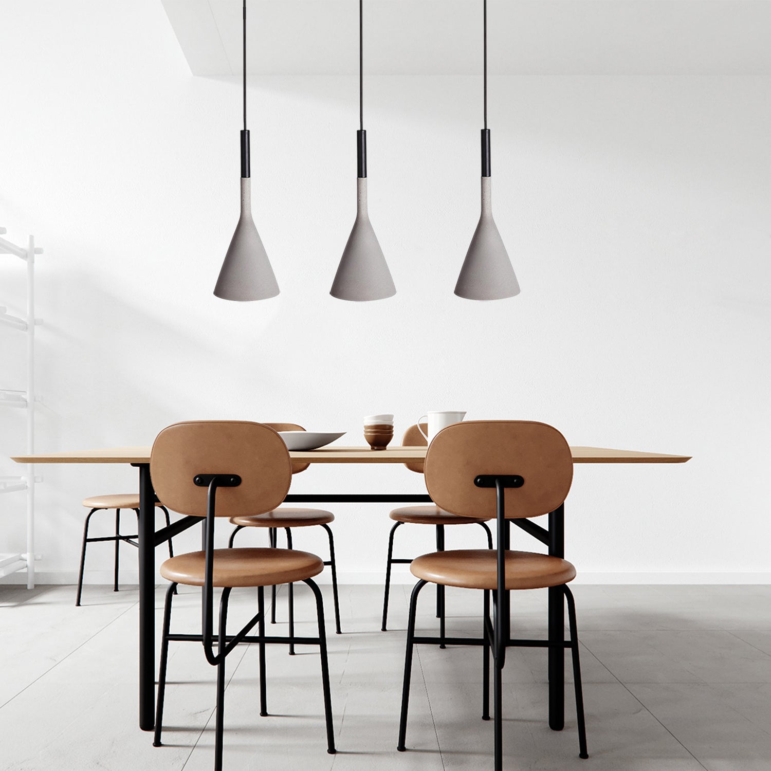 The Concrete Pendant Lamp draws inspiration from the plumb bob, a tool traditionally used on construction sites to ensure vertical precision. Crafted with meticulous concrete artistry, it showcases a striking modern aesthetic. A distinctive grout highlights the lamp’s raw, polished finish, allowing the industrial materials to radiate a warm, refined, and singular character.