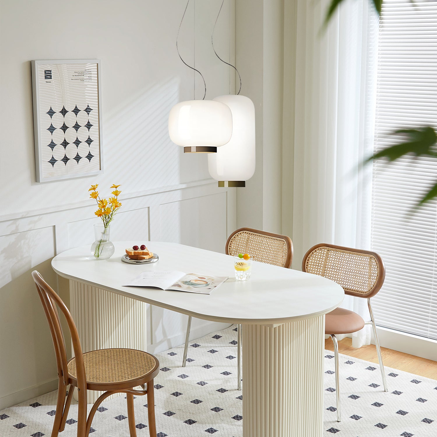 The Couchin Glass Pendant Light features a smooth opal glass shade with a rounded form that offers soft, even illumination. Its minimalist design blends well with various interior styles, making it suitable for living rooms, dining areas, or bedrooms. The metal accent at the base adds a refined touch while ensuring durability. This pendant light provides comfortable lighting for everyday use and complements modern or contemporary spaces.