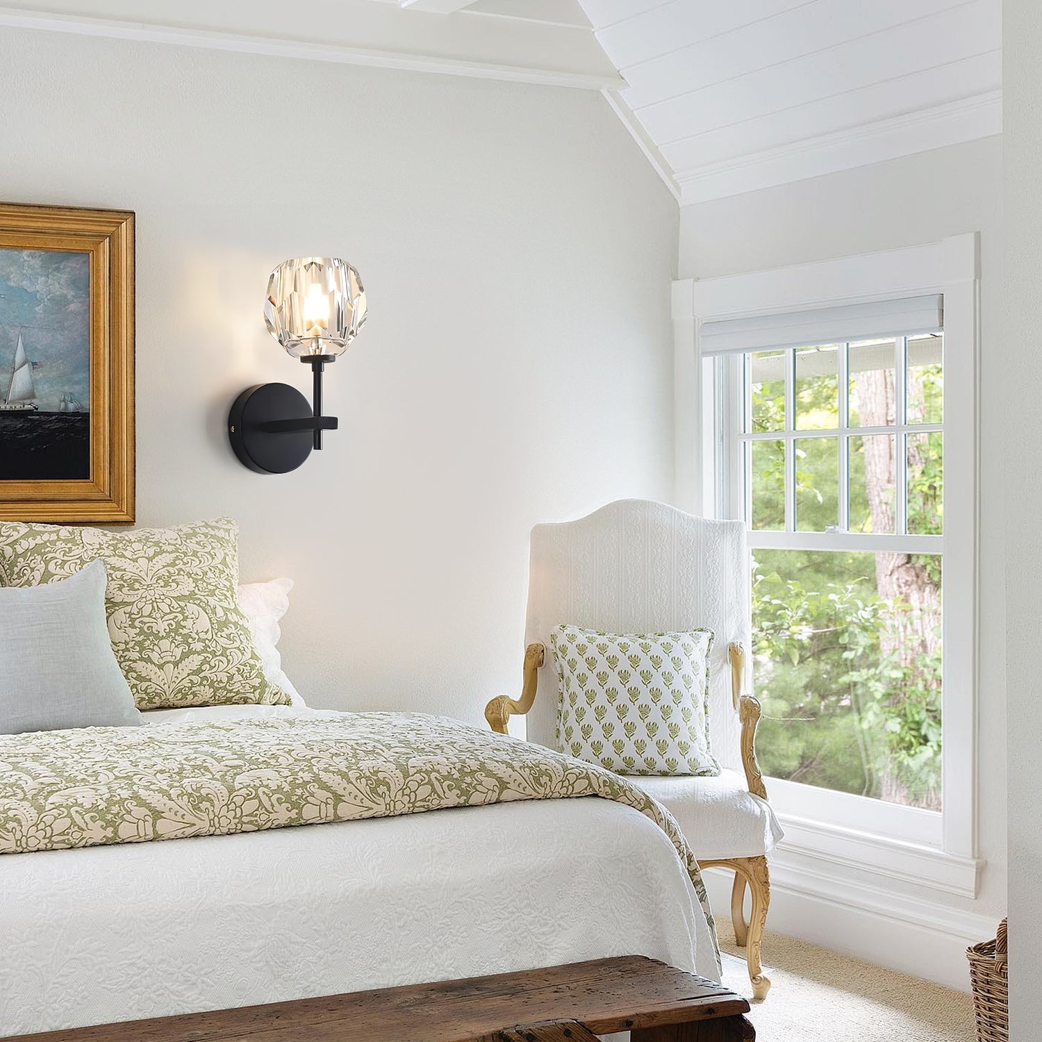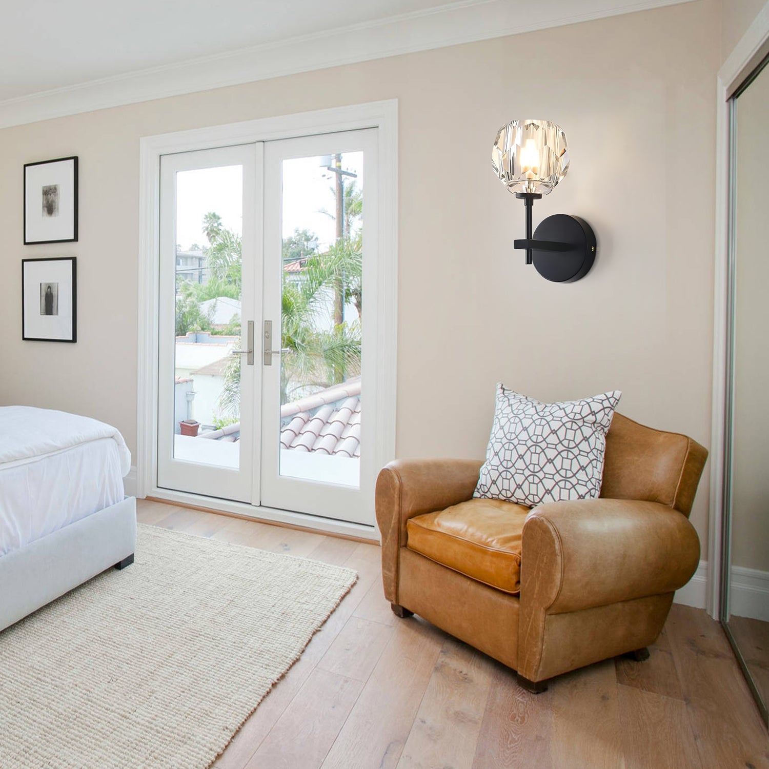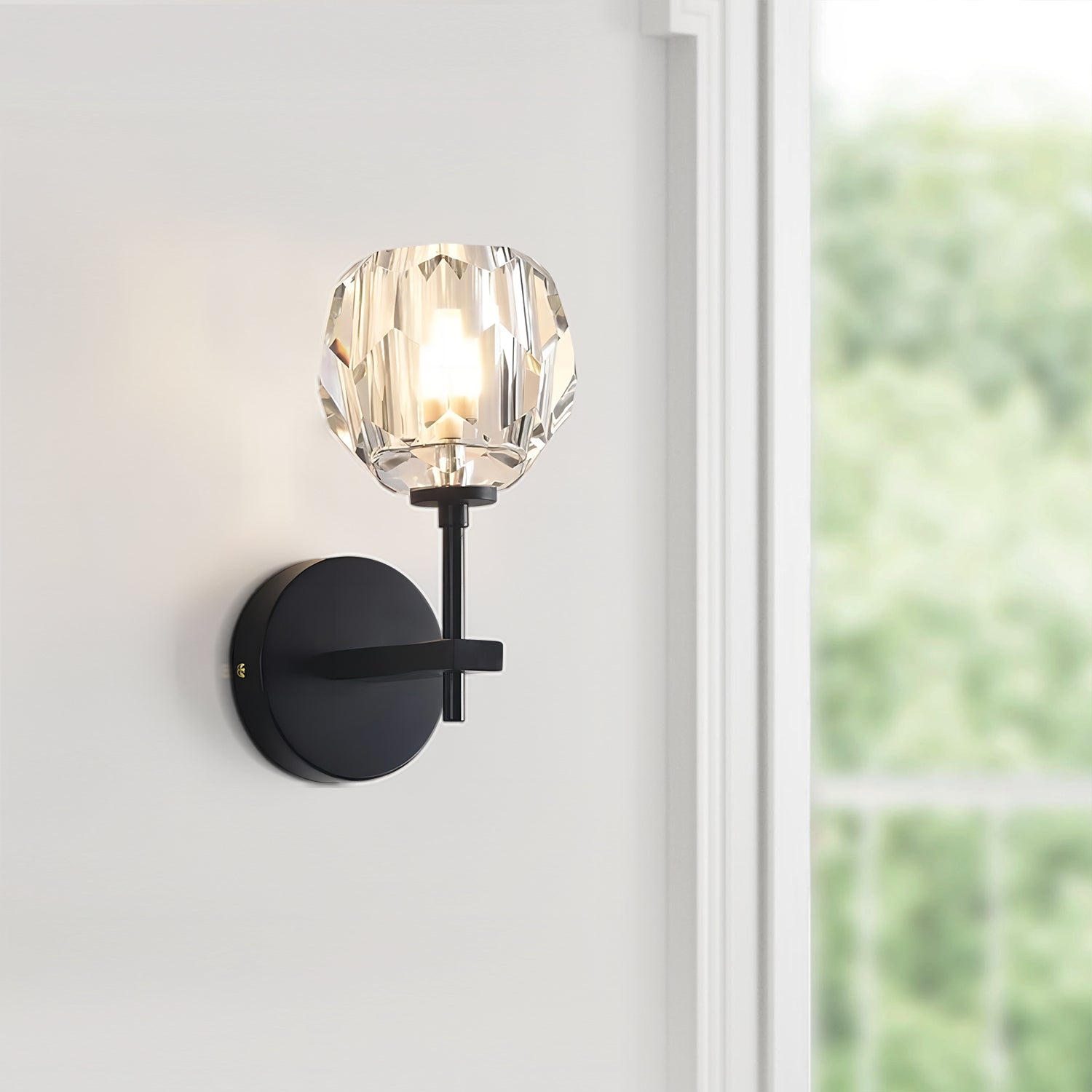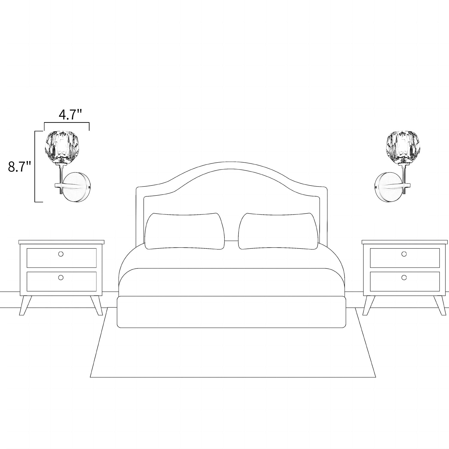 The Crystal Glass Sconce is crafted from solid brass and crystal glass, exemplifying a commitment to premium materials and superior craftsmanship. Inspired by the minimalist ethos of 1960s design, each precisely faceted sphere is carefully hand-ground and polished to beautifully reflect and refract light.