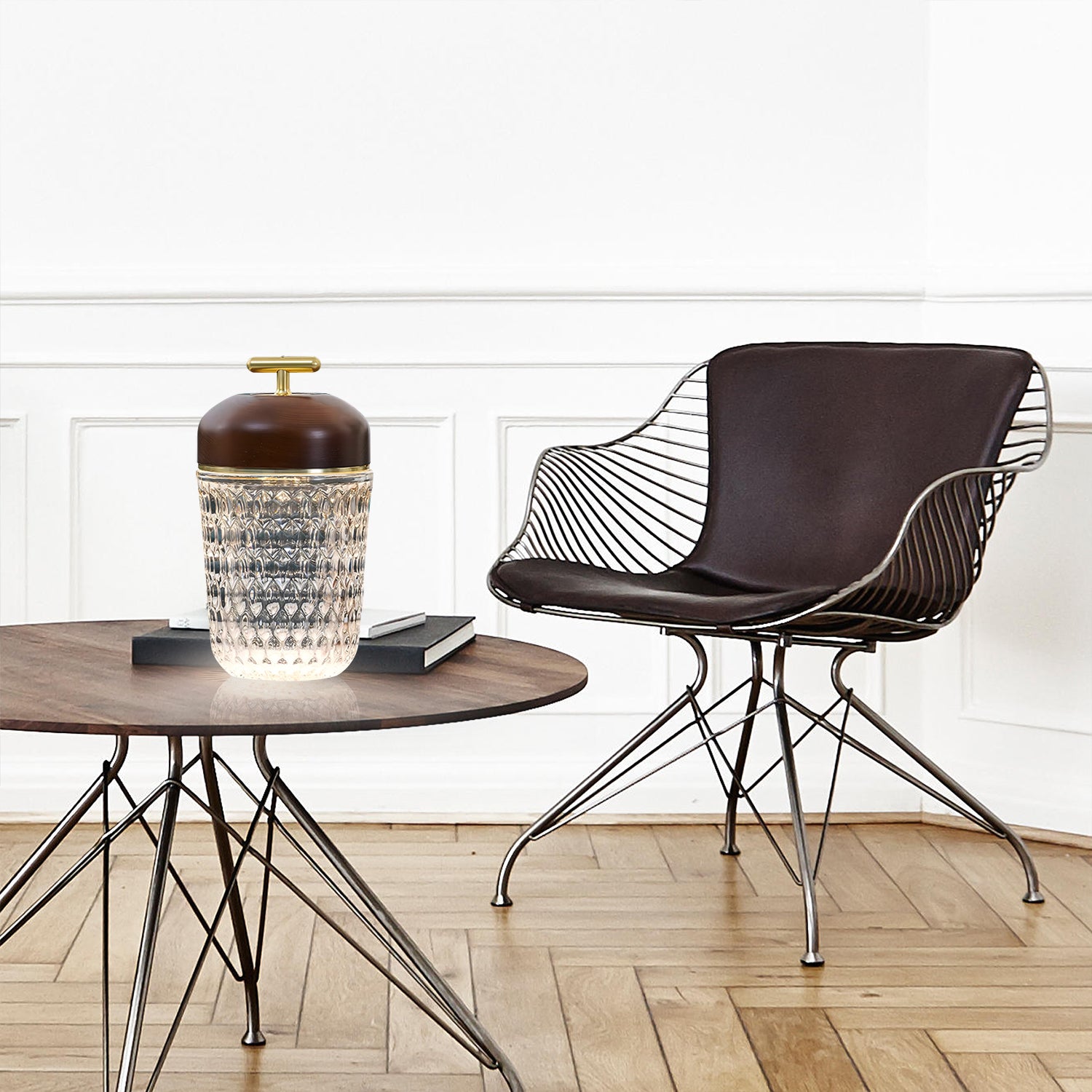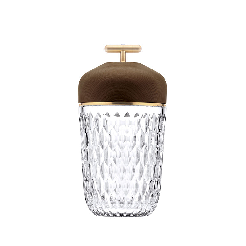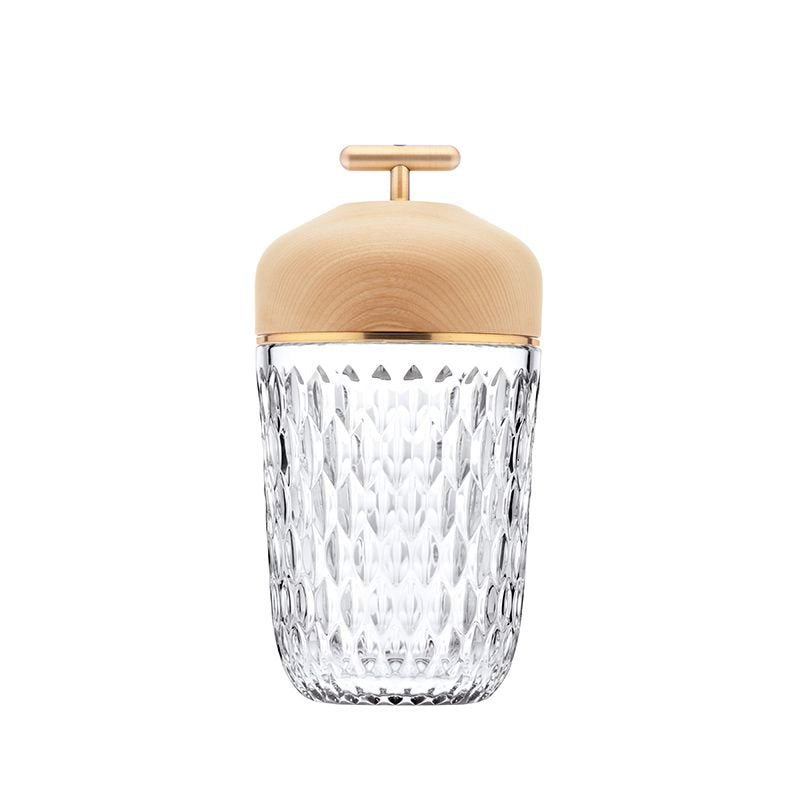 The Crystal Pine Cone Table Lamp combines an acrylic and zinc alloy body with finely beveled leaf patterns that produce layered light and shadow, resulting in a radiant crystal-like effect. Its adaptable design fits seamlessly into various home settings. With adjustable brightness, this lamp is perfect for creating a warm, intimate atmosphere, particularly suited for areas such as cloakrooms.