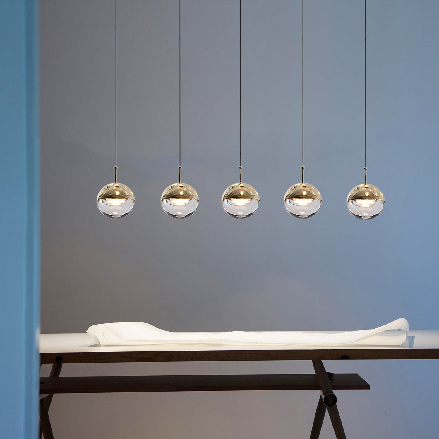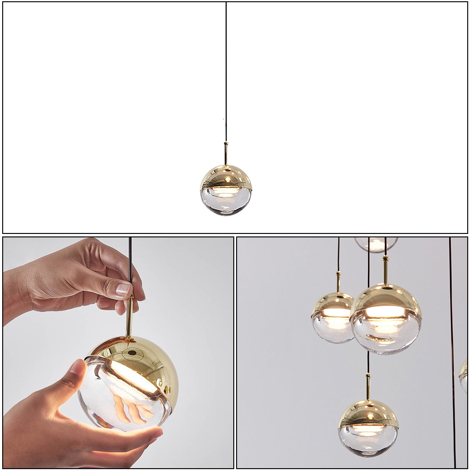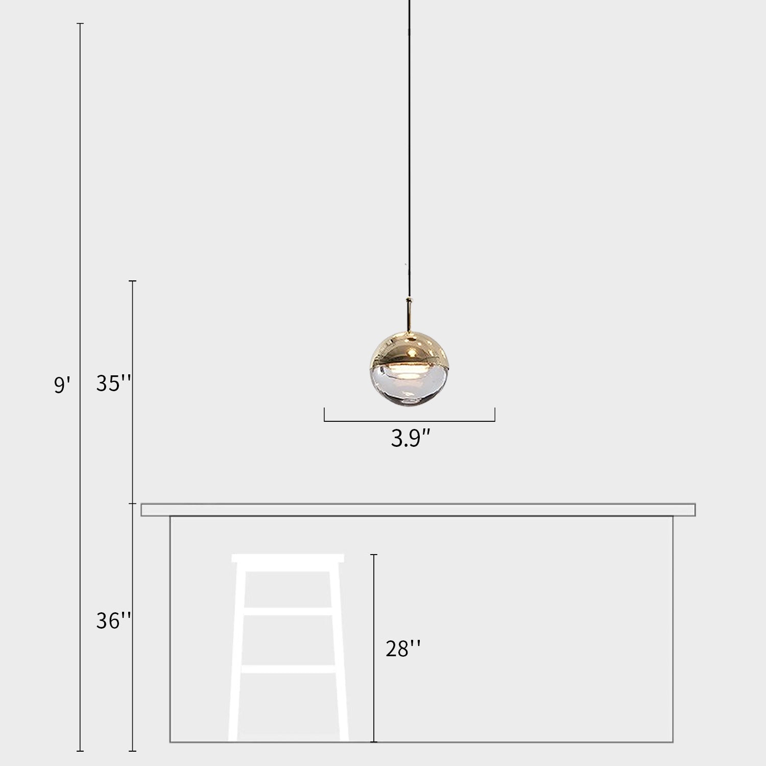 We provide 150 cm / 59 inches of hanging wire. It can be extended upon request.