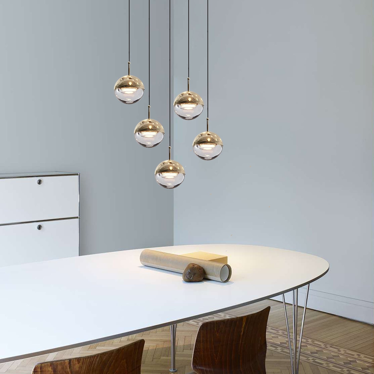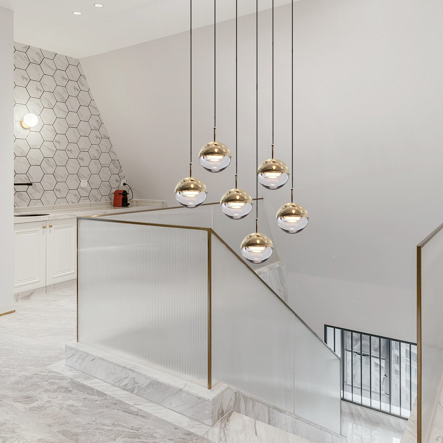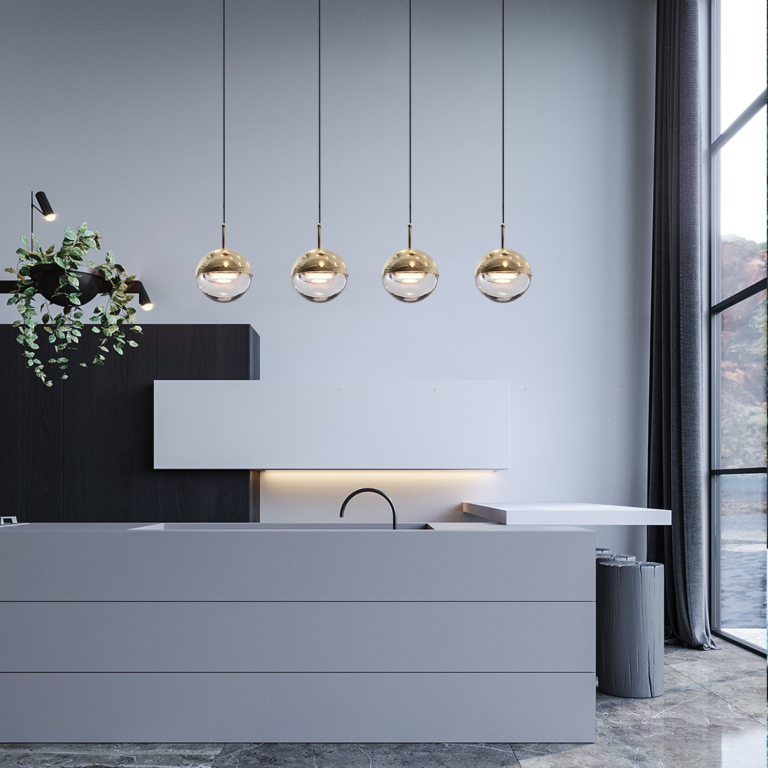 We provide 150 cm / 59 inches of hanging wire. It can be extended upon request.