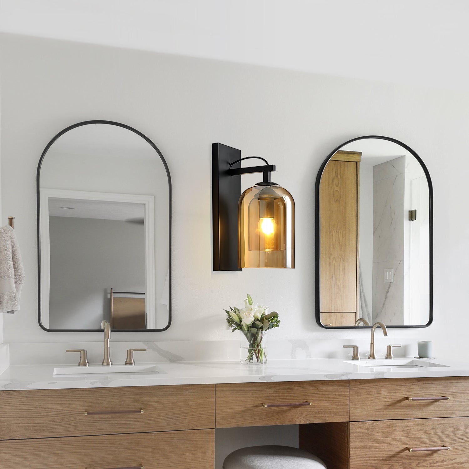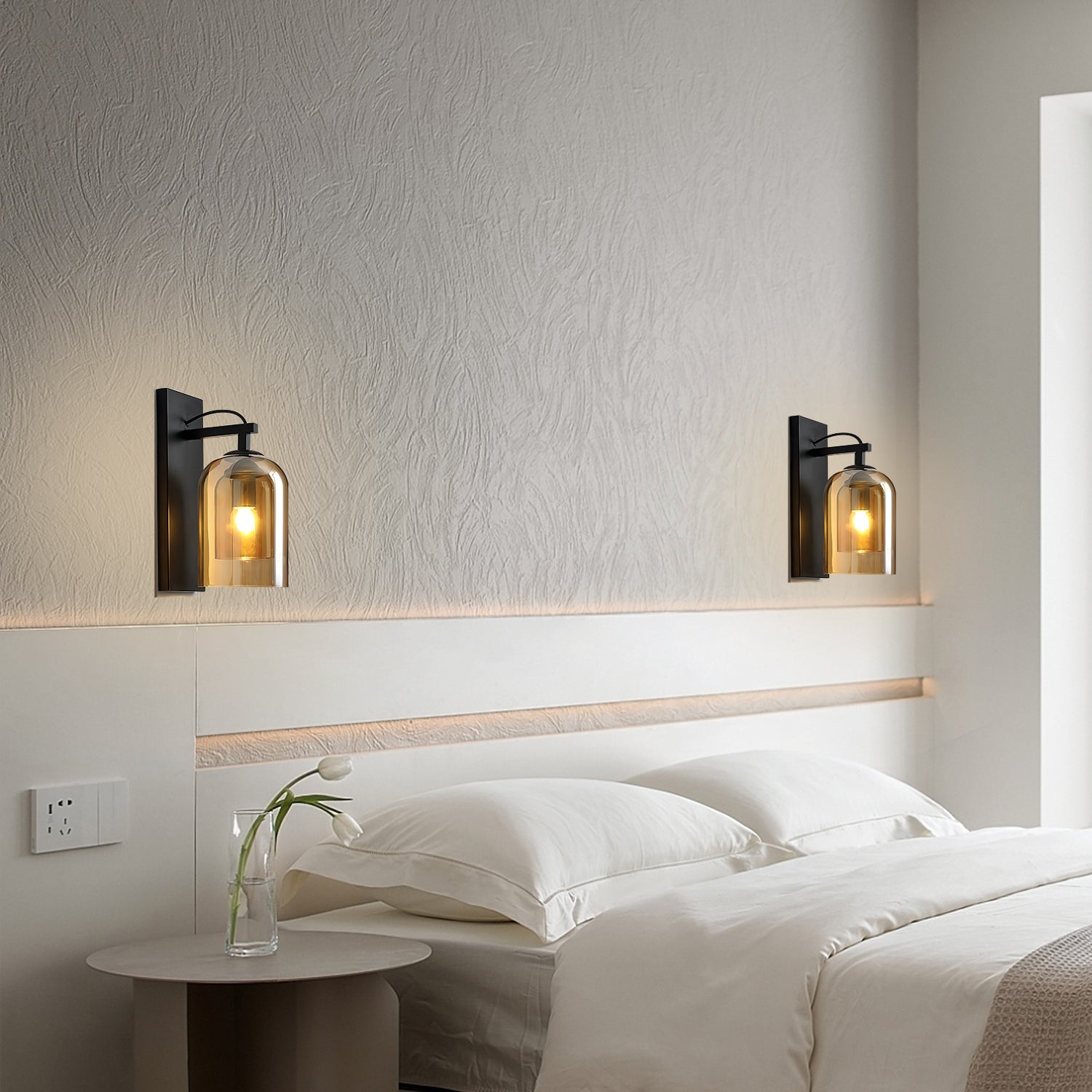 Enhance your space with a double glazed wall sconce featuring a rust-resistant black finish. Crafted from pure, hand-blown clear glass, its dual glass bells create delicate layers of illumination. The minimalist design amplifies the visual depth, achieving optimal light saturation. This fixture delivers a soothing and refined lighting experience.