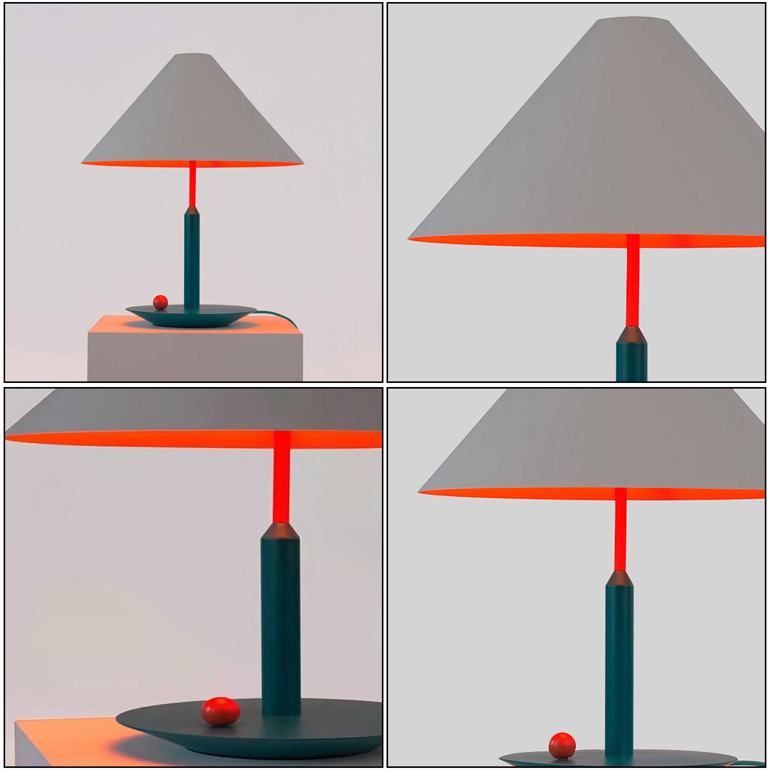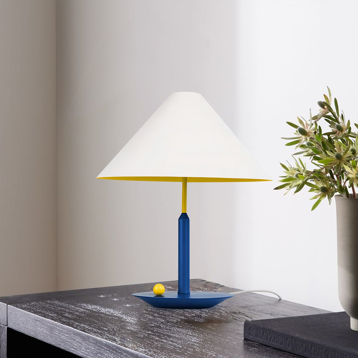 The Eliyo Table Lamp elegantly balances form and function. Its robust metal base provides solid support for a cone-shaped shade that flares gracefully, reminiscent of a delicate ballerina’s tutu. Atop, a playful ball switch adds a touch of whimsy, resembling a colorful truffle that contrasts beautifully with the lamp’s streamlined silhouette. This distinctive piece infuses any room with artistic flair, offering both illumination and a unique design statement.