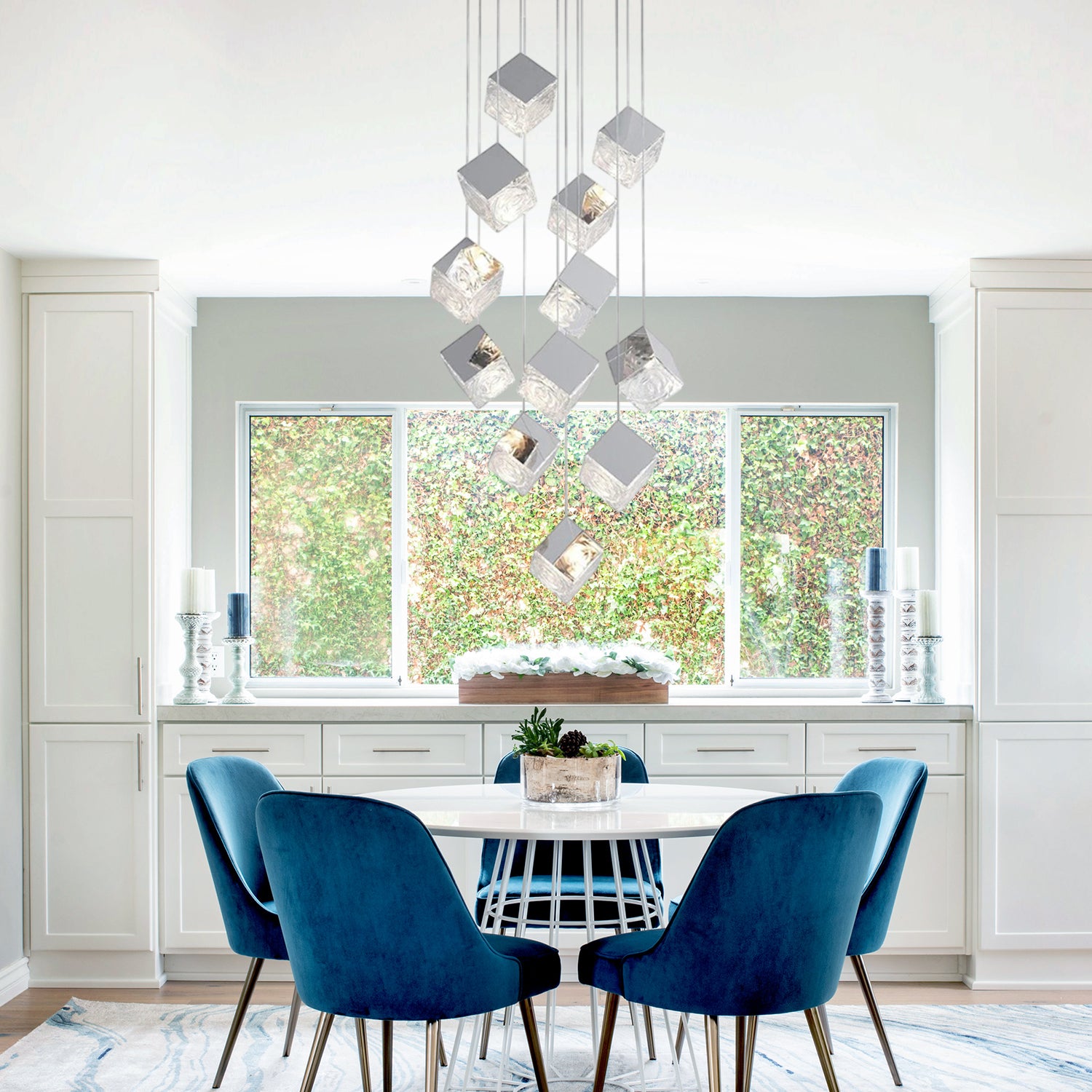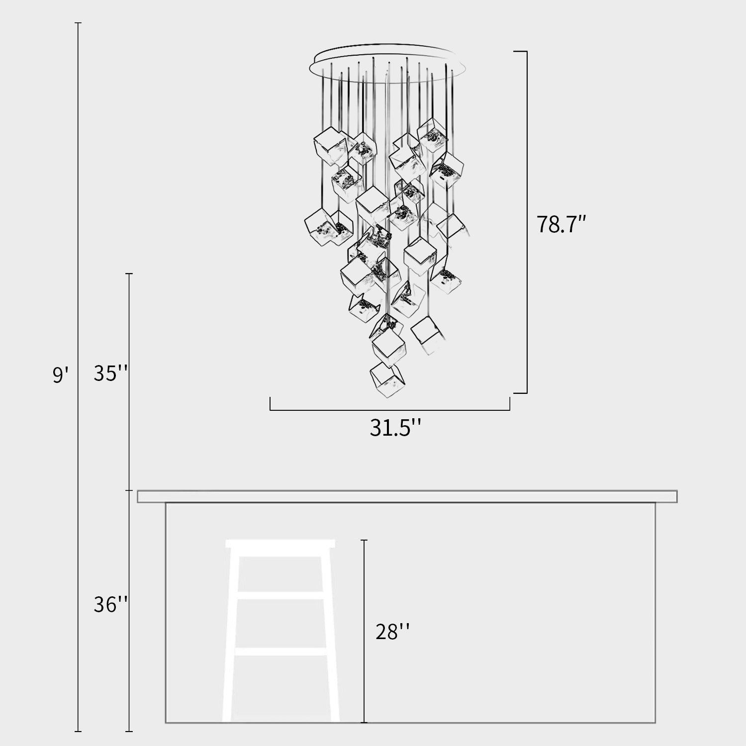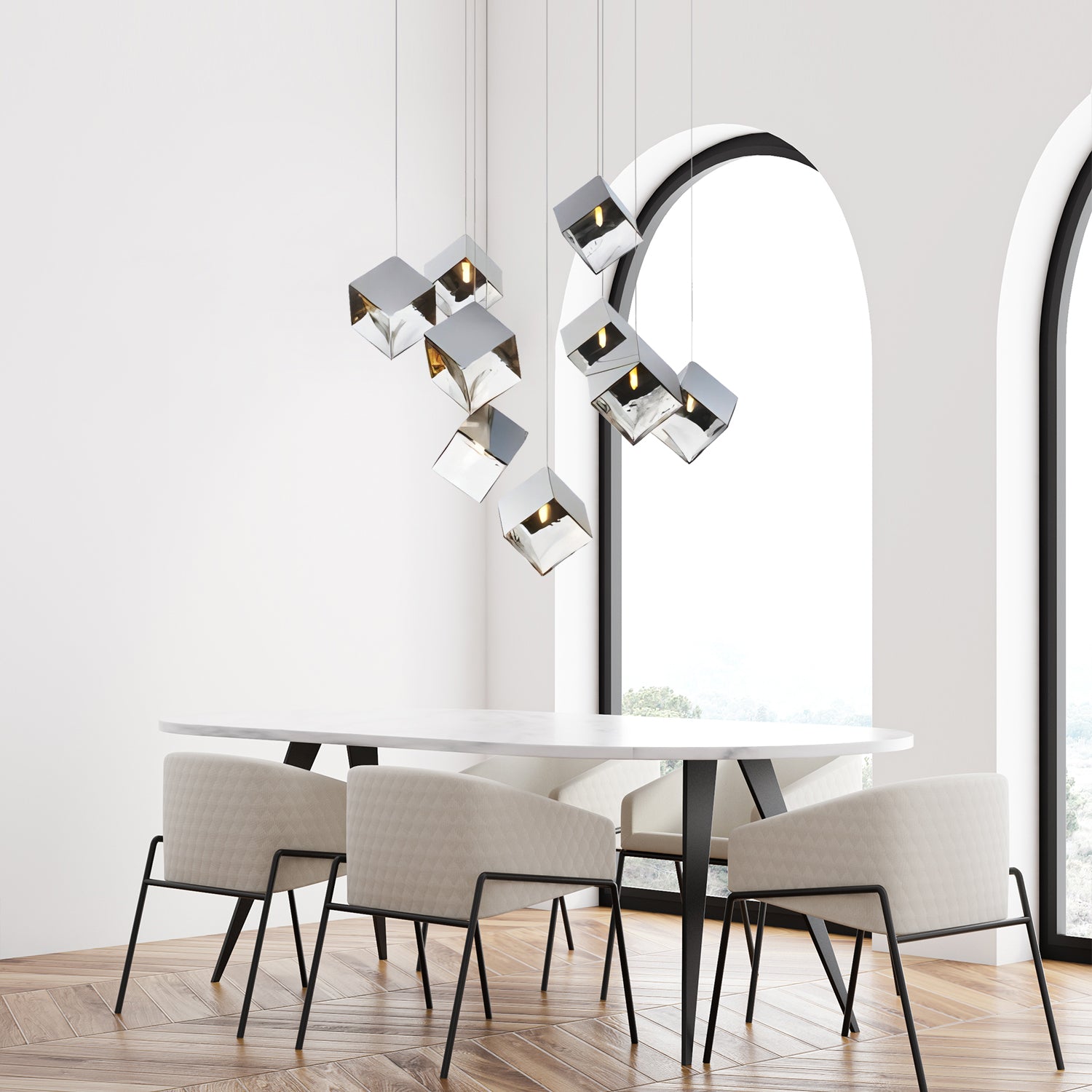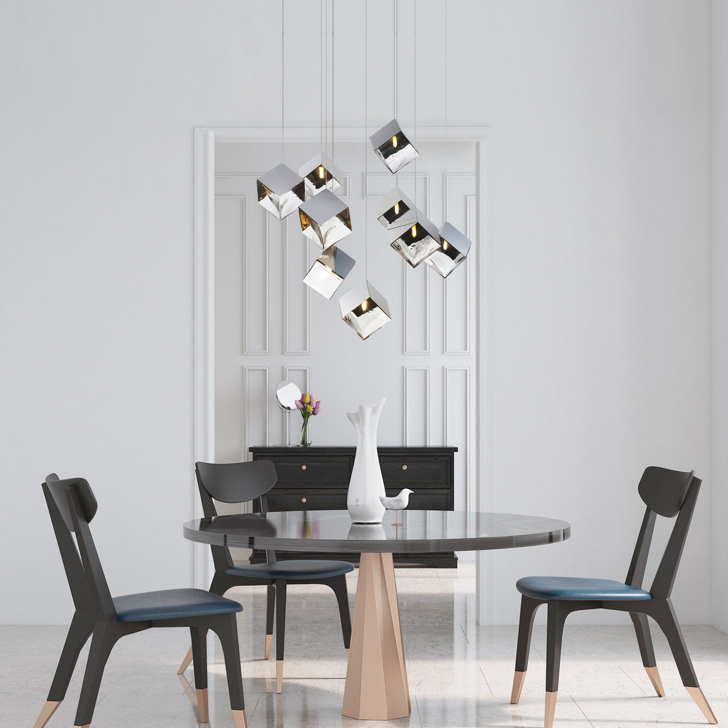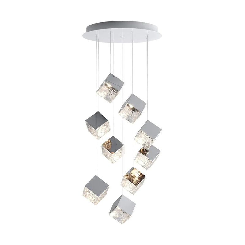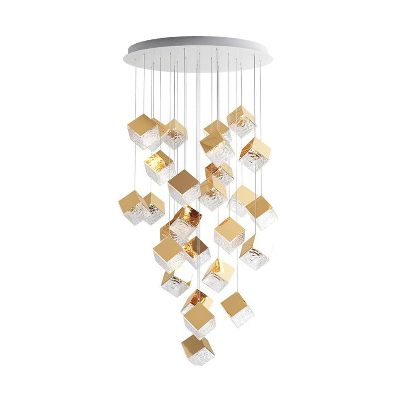 The Ice Crystal Cube Pendant features a modern cube design combining clear textured glass with a warm metallic finish. Each shade softly diffuses light, creating a gentle and balanced glow. Suitable for dining areas, living rooms, or hallways, this pendant adds a refined geometric touch to contemporary interiors.