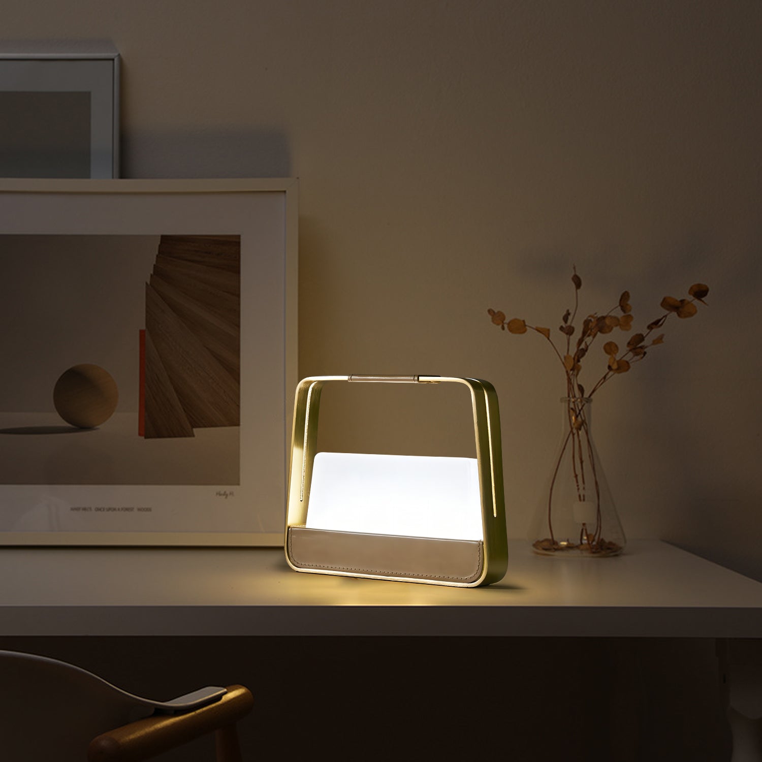 The Jacqueline Portable Table features a modern frame design with a built-in handle for easy movement. Its soft, diffused light creates a comfortable atmosphere for desks, bedside tables, or small spaces. The lamp includes a stable base and a smooth surface finish that fits well with contemporary interiors. Designed for everyday use, it provides simple and practical lighting where needed.