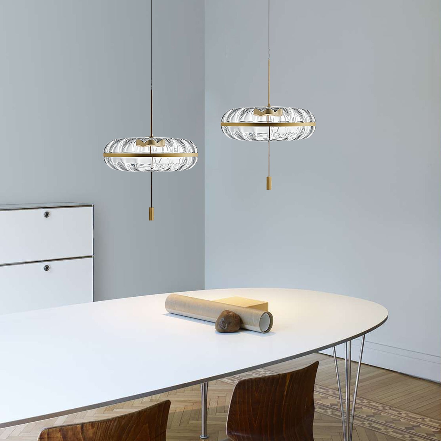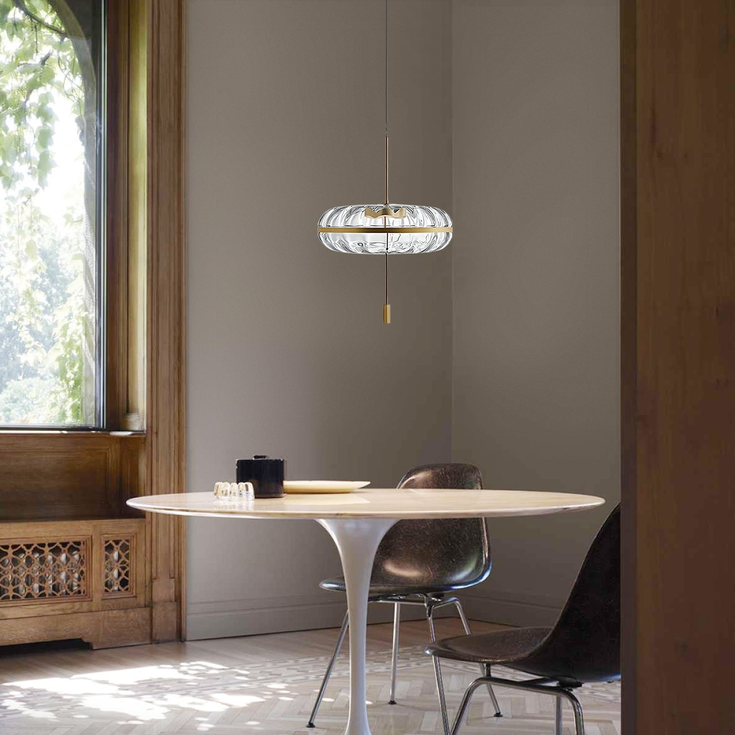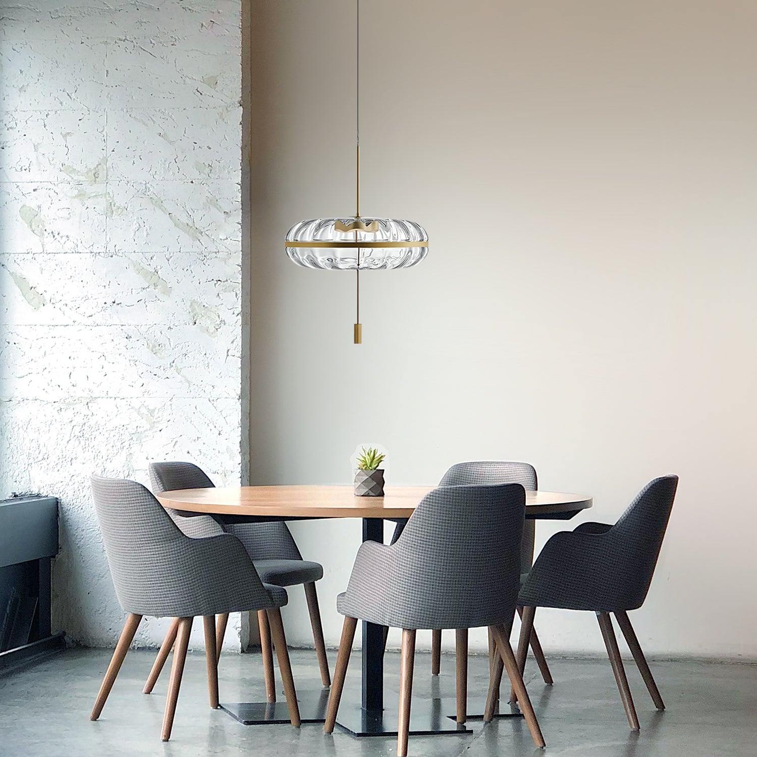 The Jolie Glass Pendant features a clear glass shade paired with a simple metal accent. Its clean form makes it suitable for dining areas, living rooms, or small commercial spaces. The pendant provides balanced downward lighting and works well with various interior styles. It is designed for easy installation and uses a standard light bulb.