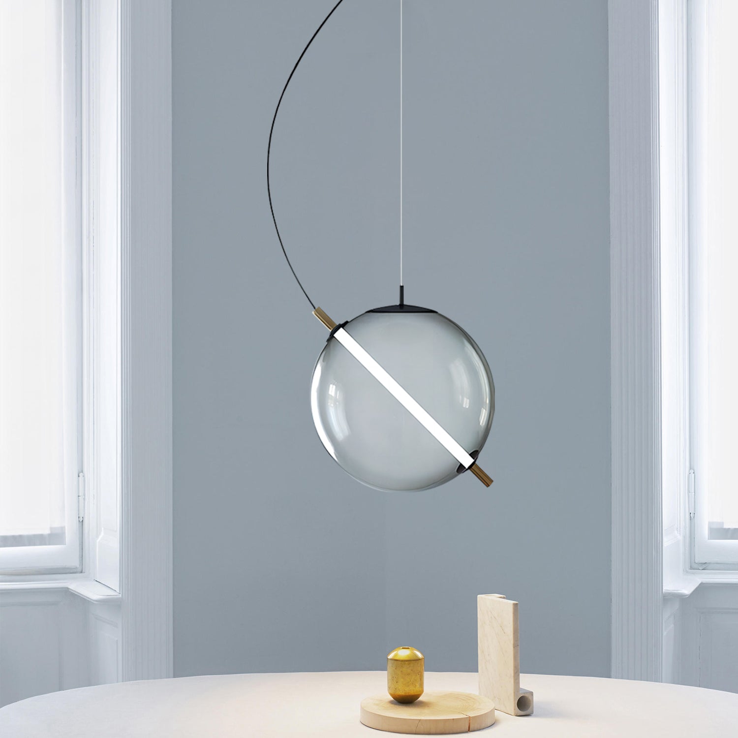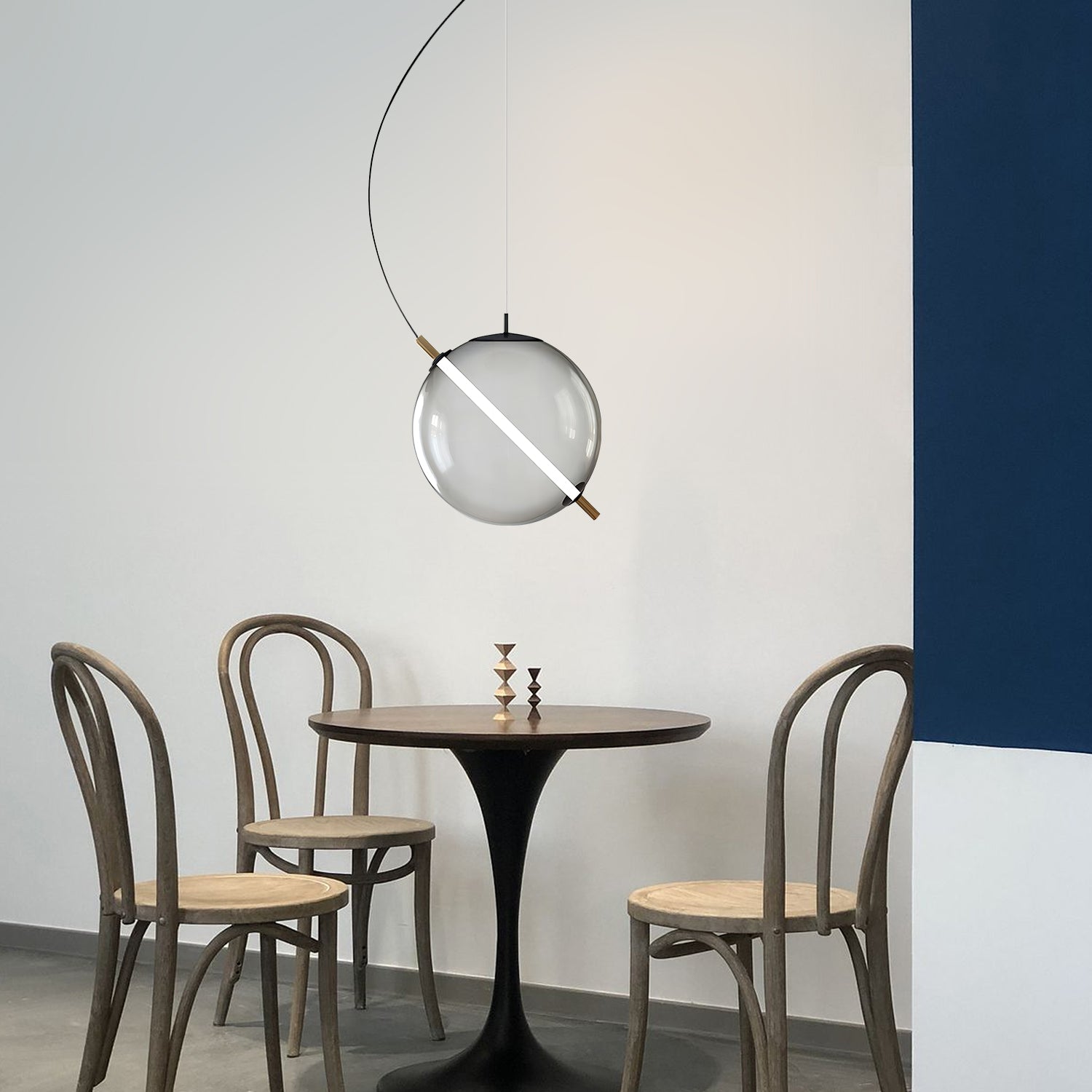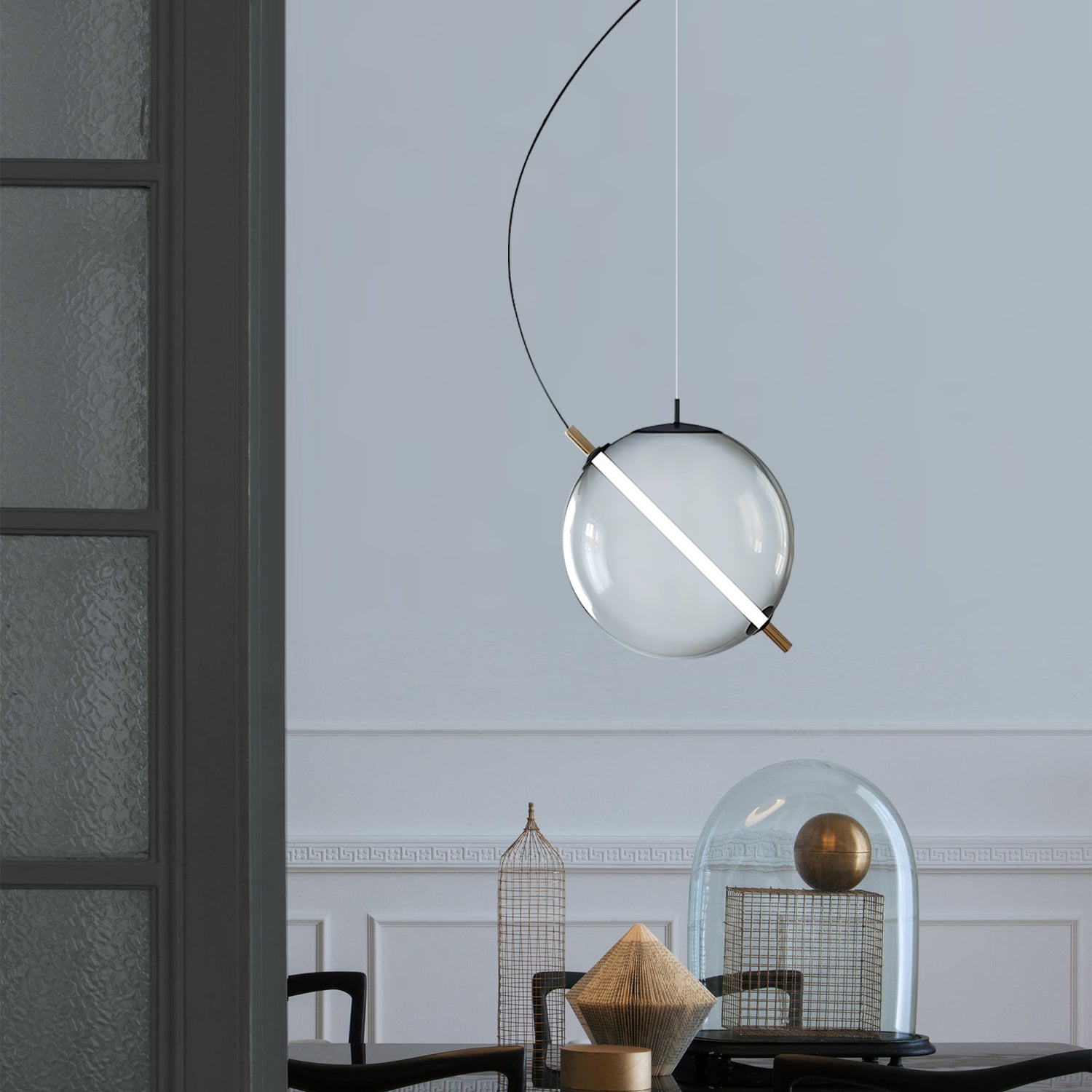 The Otto Glass Pendant features a clear spherical glass shade with a simple linear light element running through the center. Its balanced design offers soft illumination suitable for dining areas, living rooms, or offices. Made with quality glass and metal components, this pendant provides functional lighting with a clean, modern appearance.