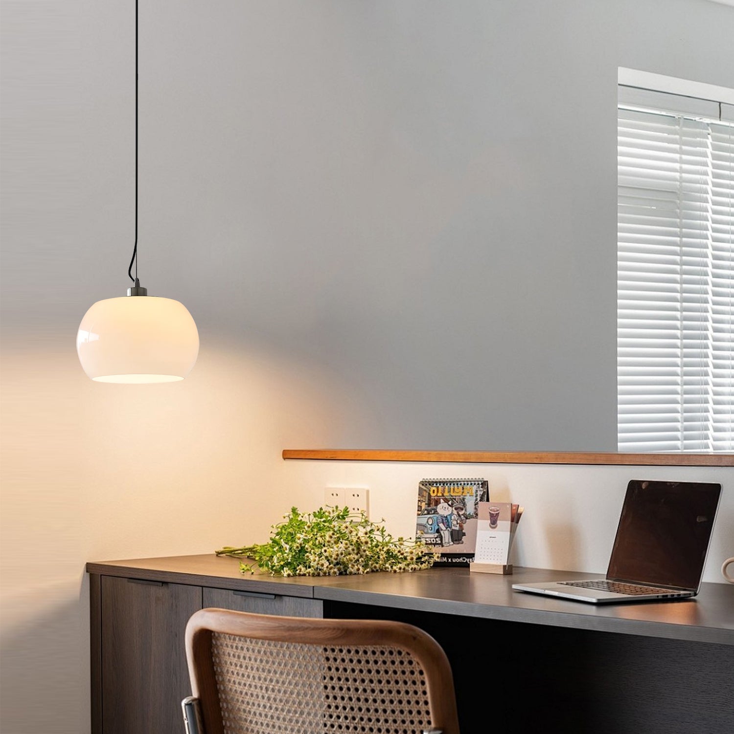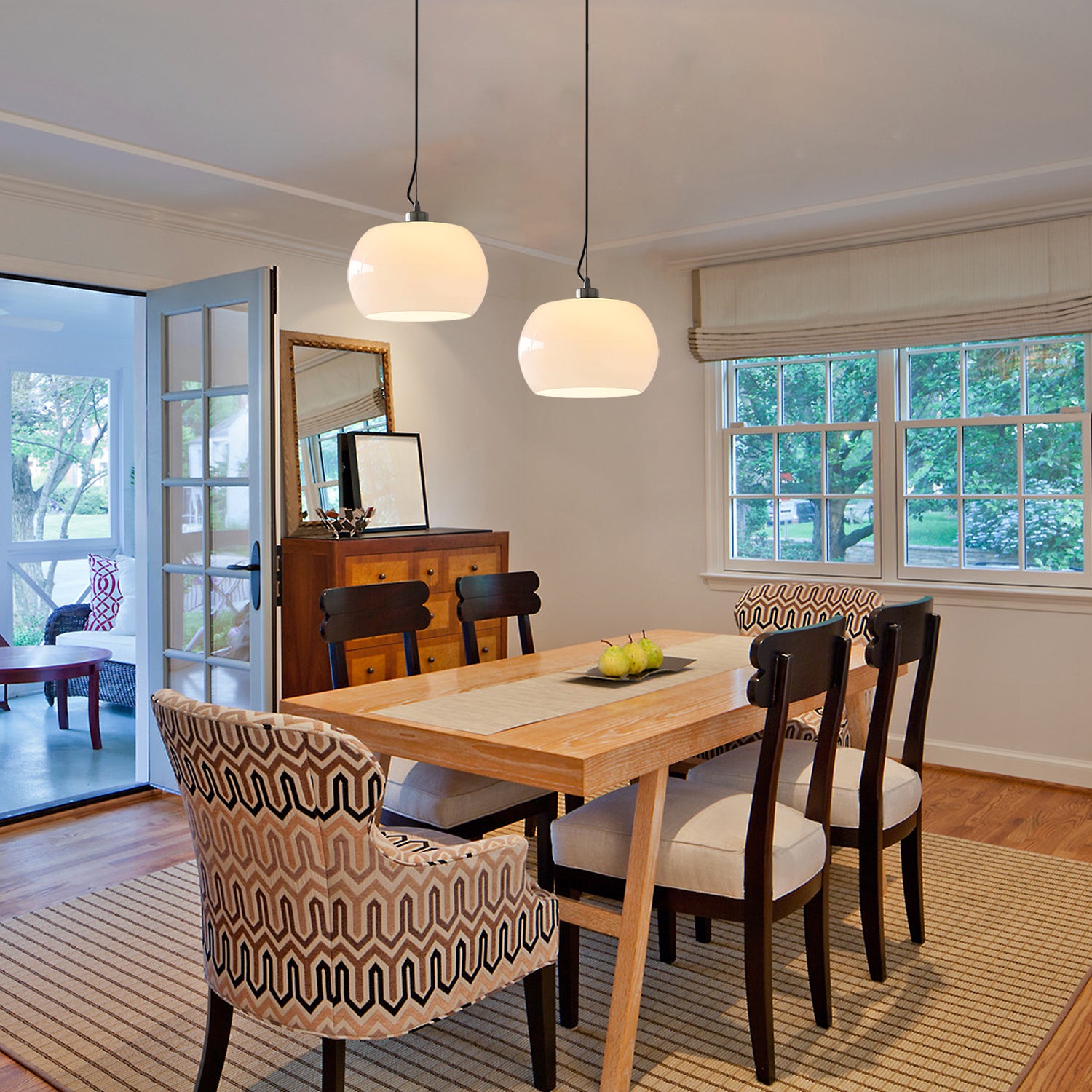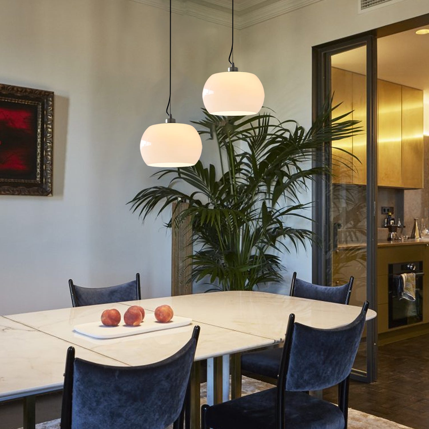 The Persimmon Oval Glass Pendant features an oval-shaped glass shade with a smooth surface and a suspended metal fixture. It provides ambient downward lighting suitable for dining areas, kitchen islands, or living spaces. The pendant is designed for standard ceiling installation and supports common bulb types, including LED options. The hanging height can be adjusted to fit different ceiling conditions.