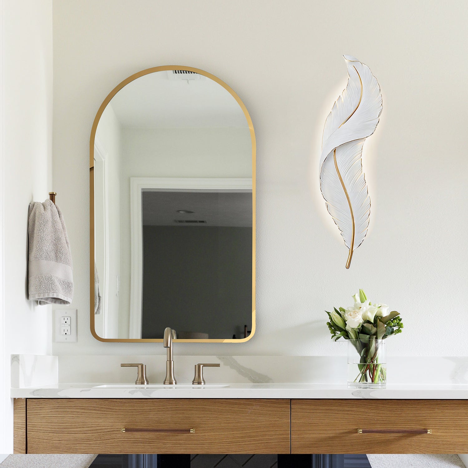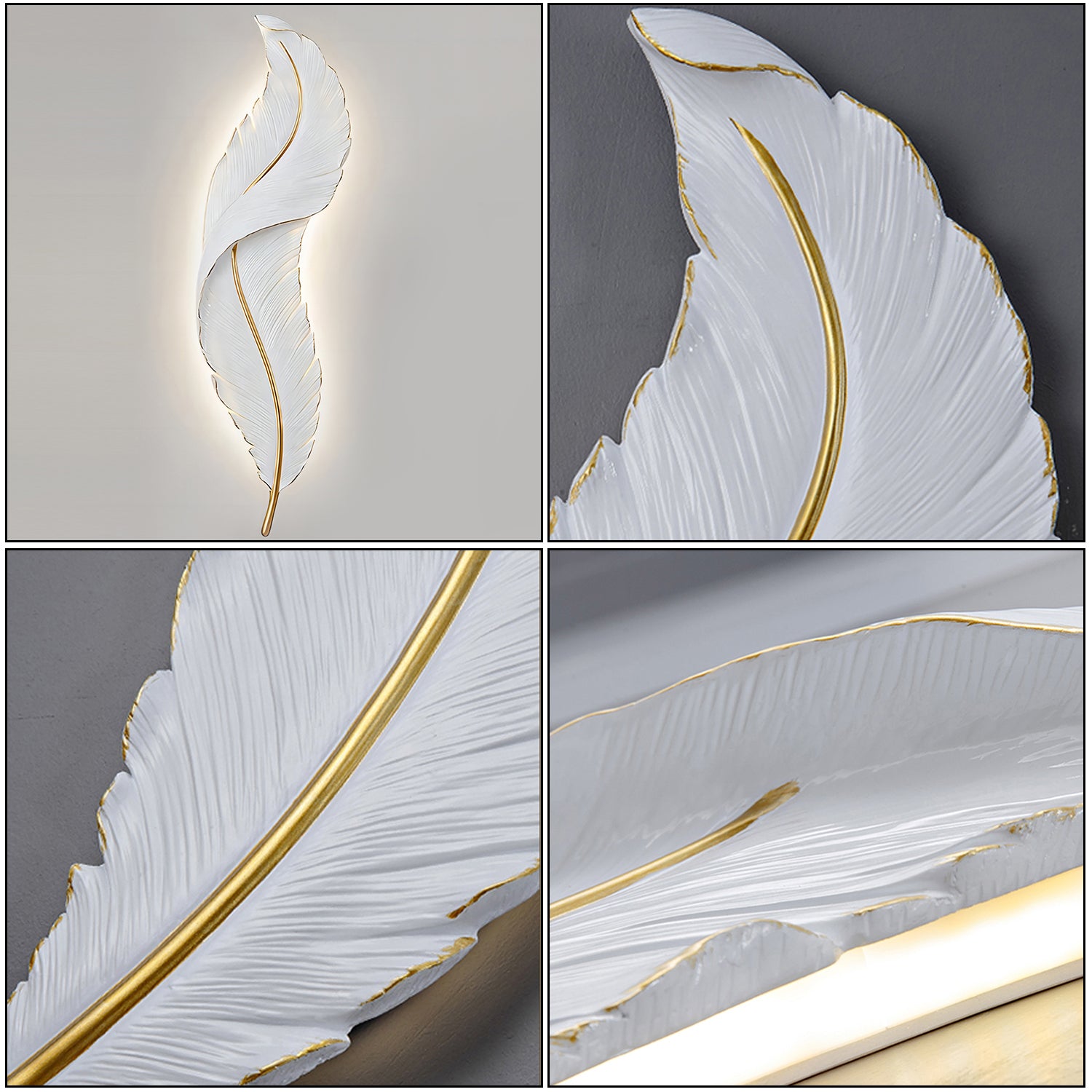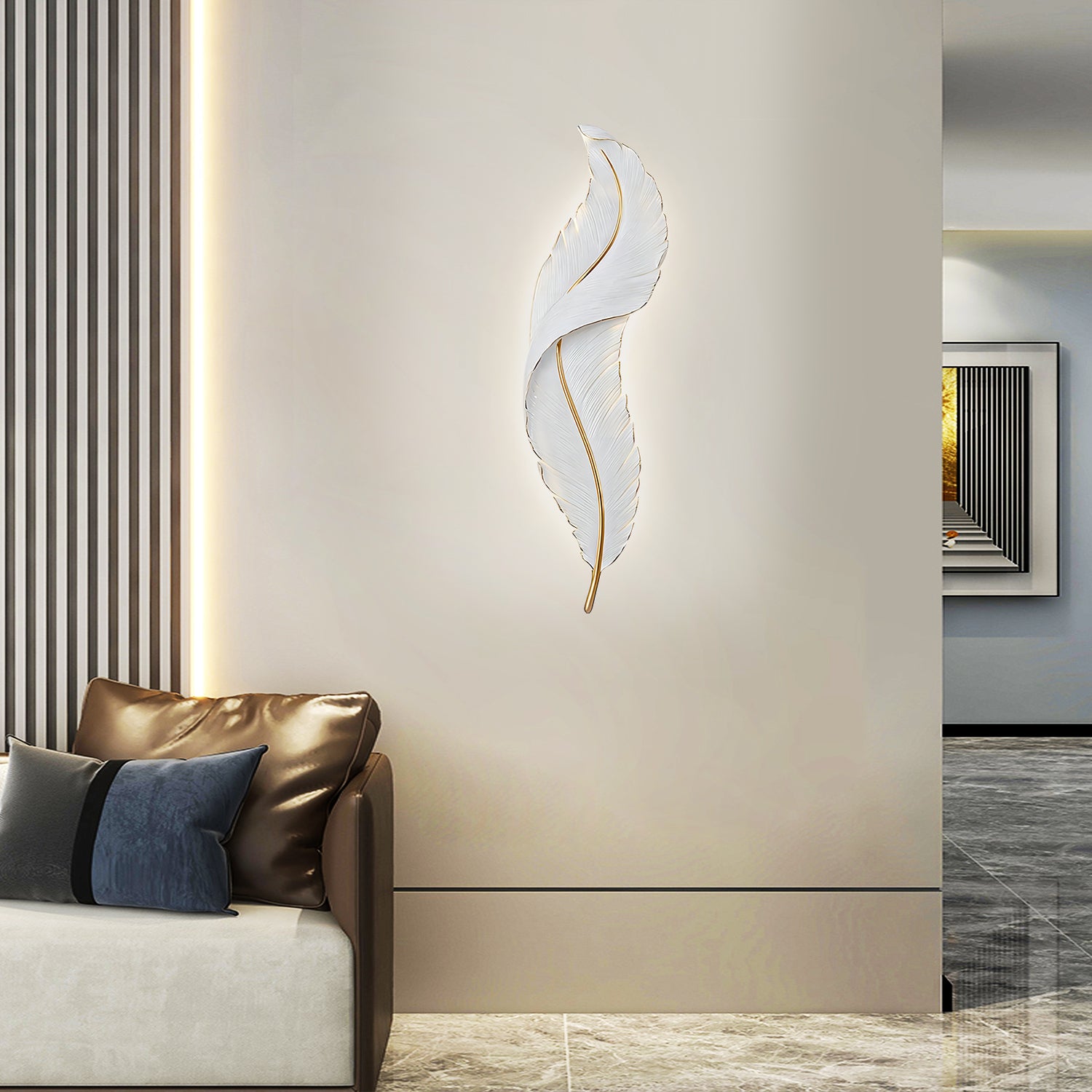Plum Wall Lamp. Featuring a graceful feather-inspired design with soft curves and delicate gold accents, this modern wall light creates a warm, ambient glow perfect for living rooms, bedrooms, or hallways. Crafted from premium materials, it blends artistry and functionality to elevate any space with a luxurious yet natural touch. Ideal for contemporary, minimalist, and upscale interiors.