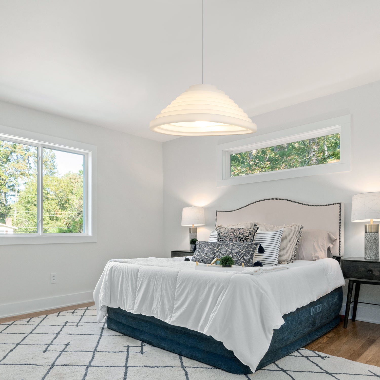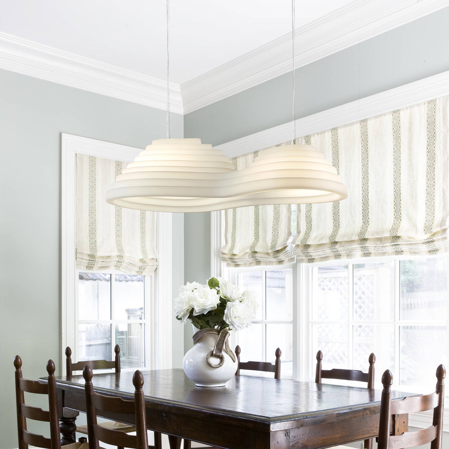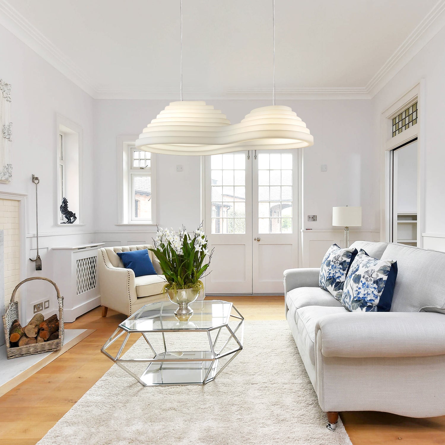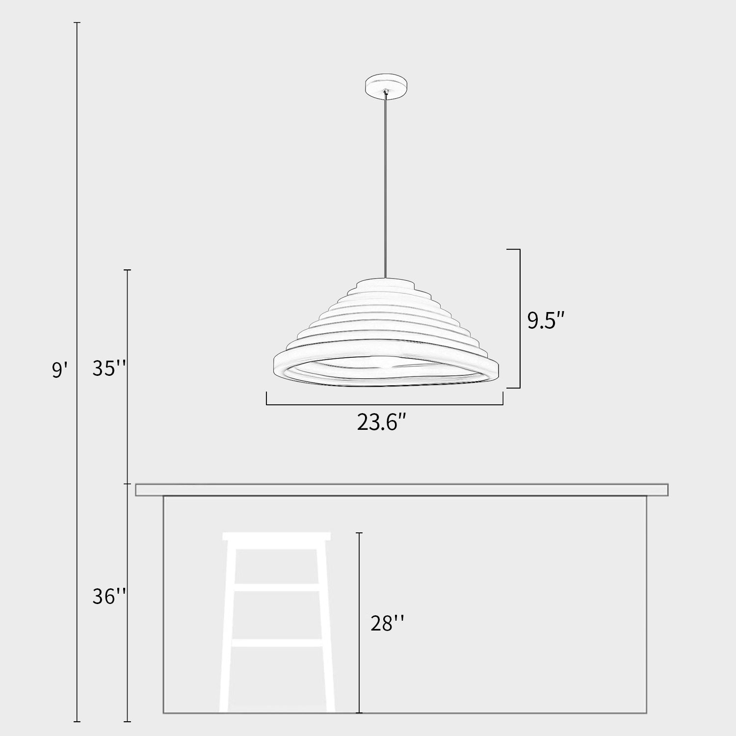 The Rice Field Wave Pendant features a layered design inspired by the curves of terraced fields. Made from durable materials with a soft white finish, it provides a gentle, even light suitable for dining rooms, living spaces, or offices. Its modern form blends functionality with a calm aesthetic, creating a comfortable atmosphere without glare.