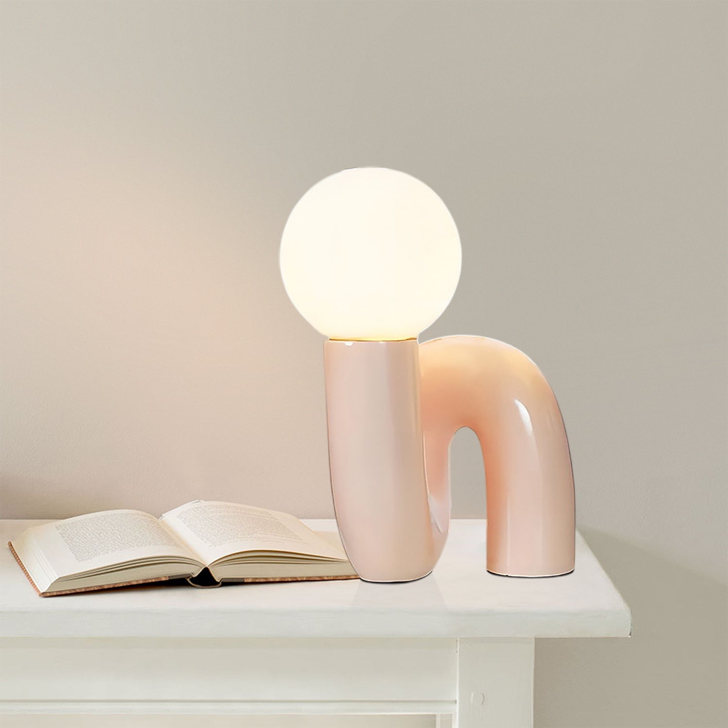 S-Shaped Resin Table Lamp, design features a short, thick shape with rounded edges and a clumsy appearance to create a series of playful. With the bright appearance and baking varnish, the original cute design has given a touch of spirituality.