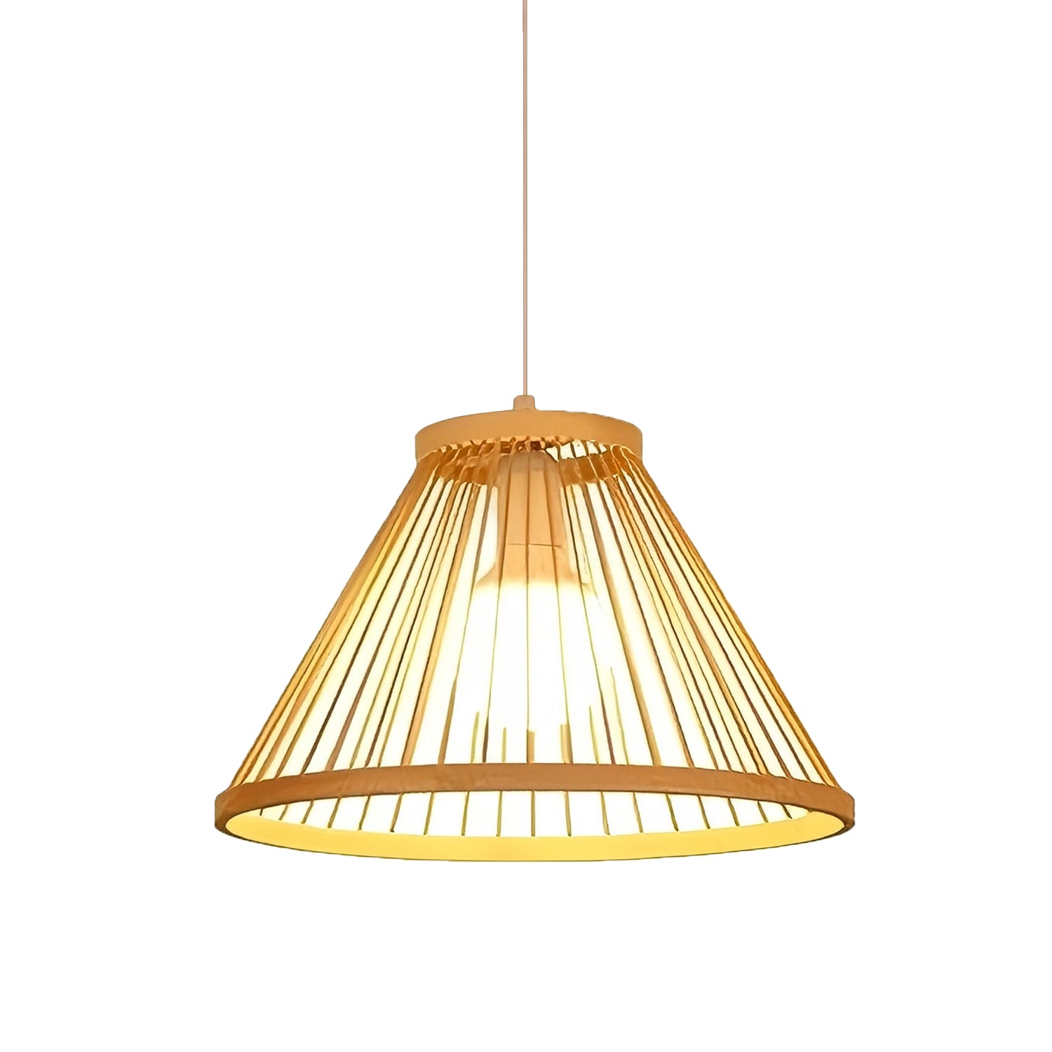 The Street Pendant Light is made from natural bamboo and designed for outdoor use. Its woven structure highlights the material’s natural texture and allows light to pass through softly, creating a comfortable illumination for patios, gardens, or covered walkways. The design combines functional durability with a style influenced by traditional Asian aesthetics.