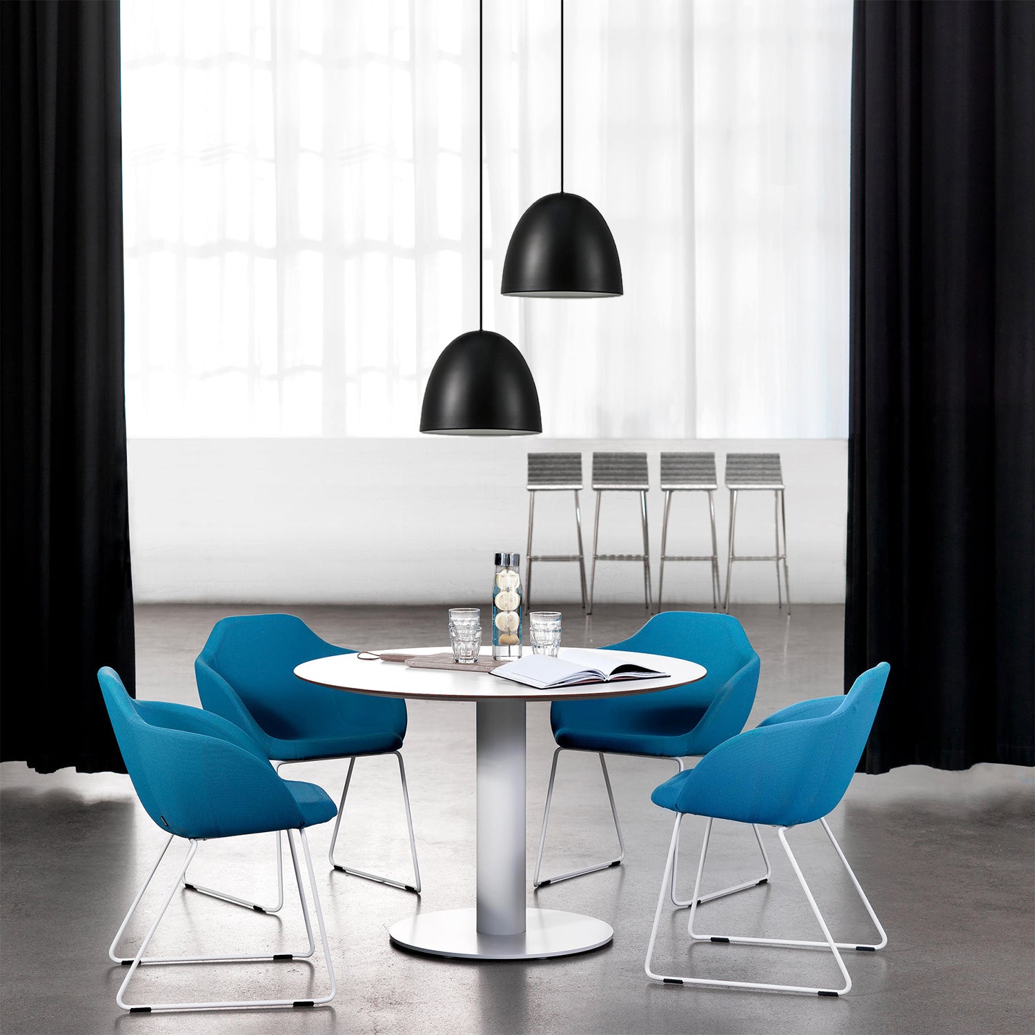 The Suspended Pendant Lamp converts movement into tangible form, created by a unique pull at its top that forms graceful, organic curves. Its base features an infinity element that improves light diffusion, reduces glare, and contributes a refined elegance to the overall design.