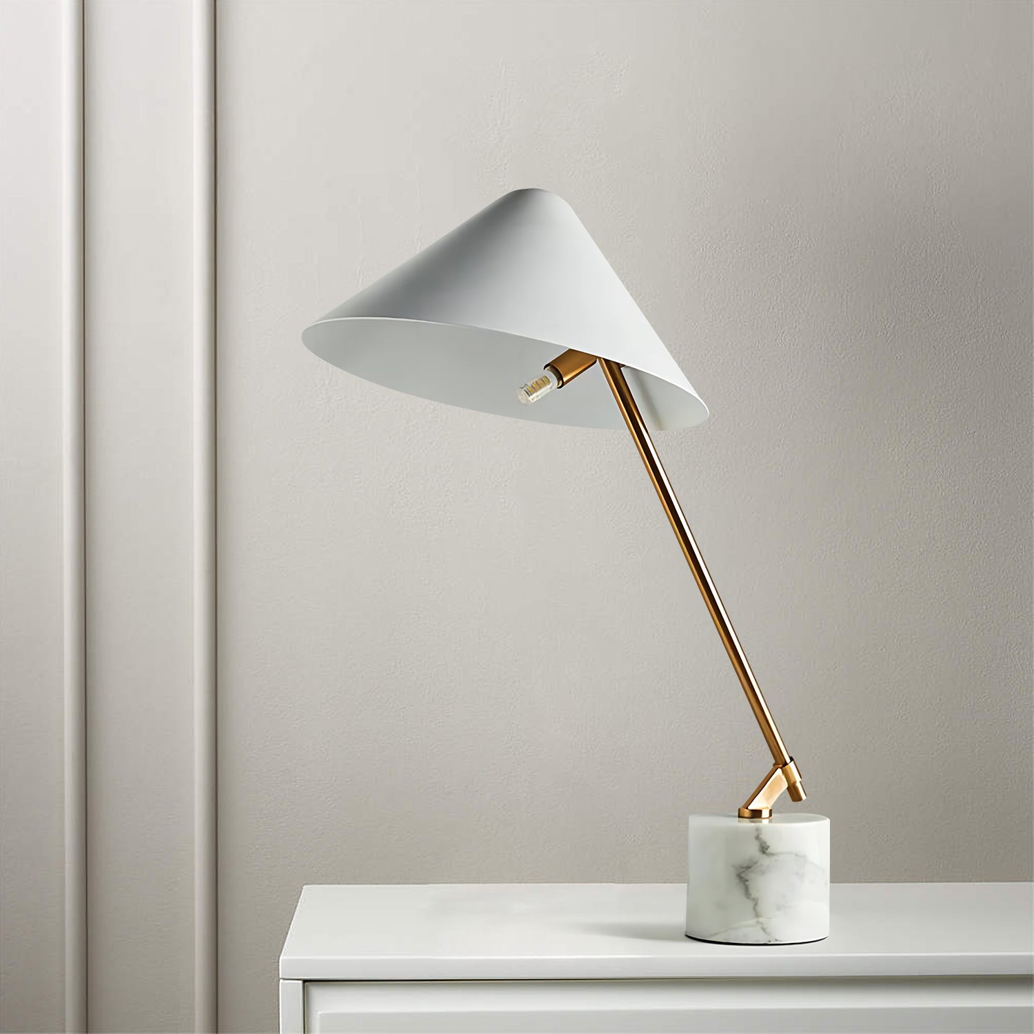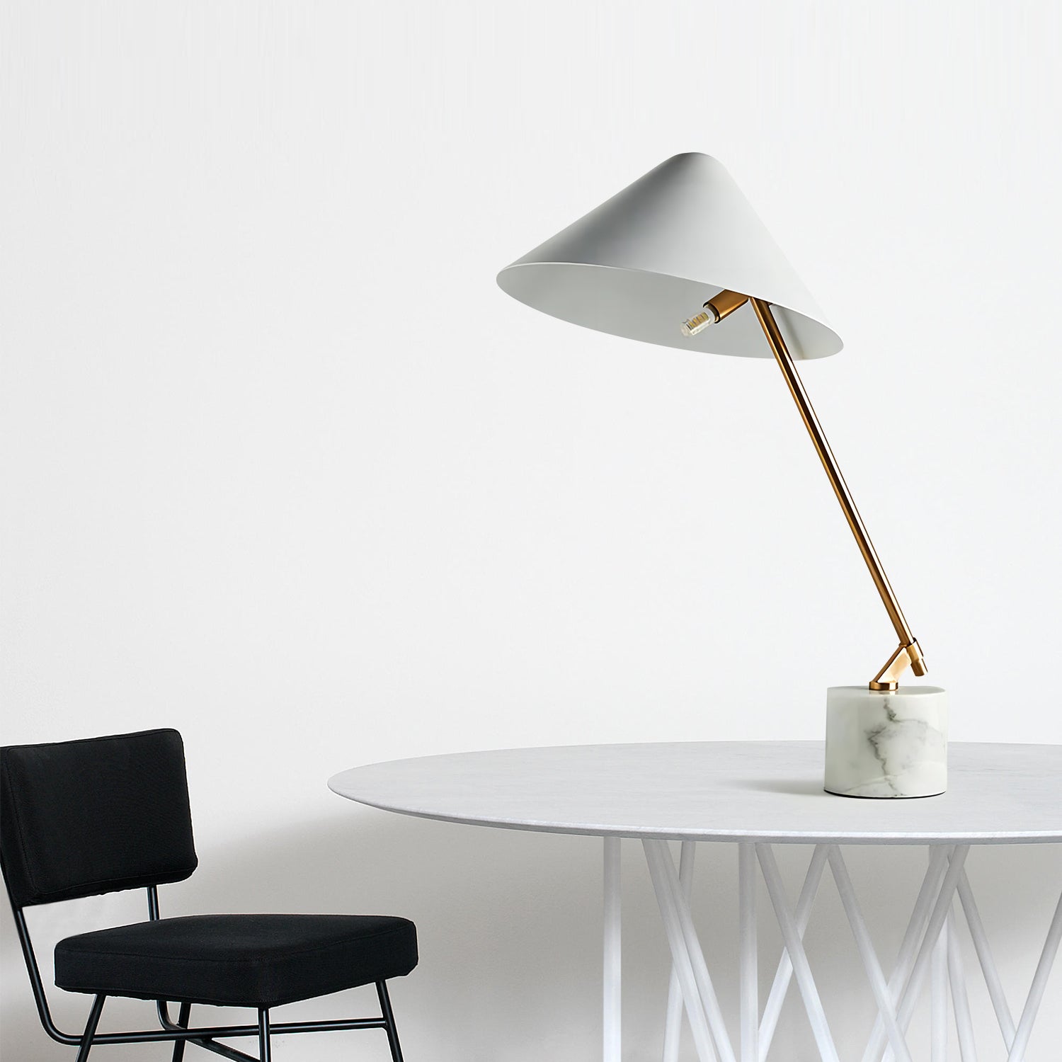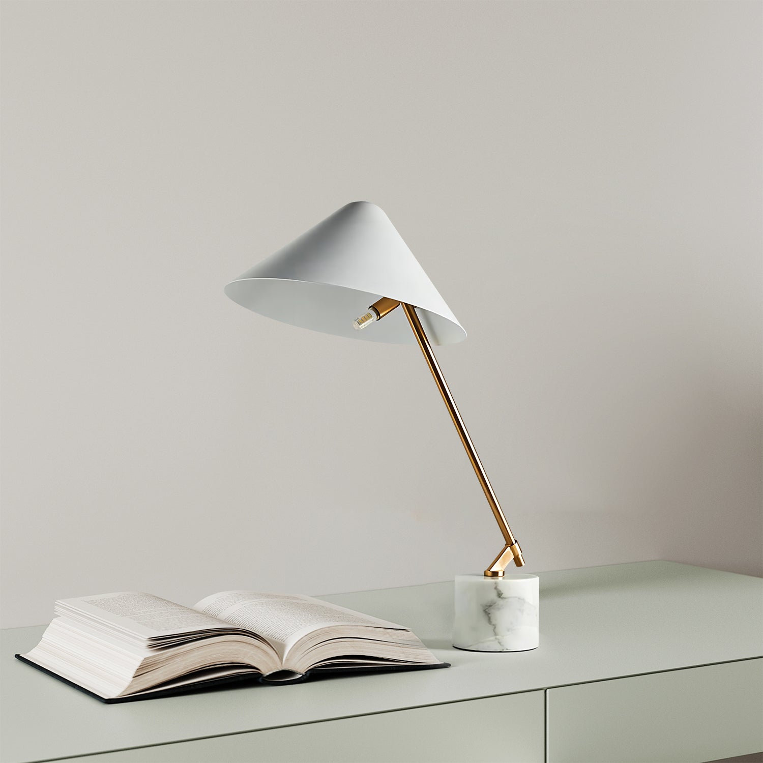 The Swivo Table Lamp embodies functional minimalism with its cylindrical base, triangular aluminum shade, and adjustable arm. Its engineering allows full 360-degree rotation of the shade around the arm and the arm around the base, offering exceptional lighting flexibility. This advanced design delivers precise control over illumination, making it an indispensable choice for users seeking both refined aesthetics and superior lighting functionality in home or professional environments.