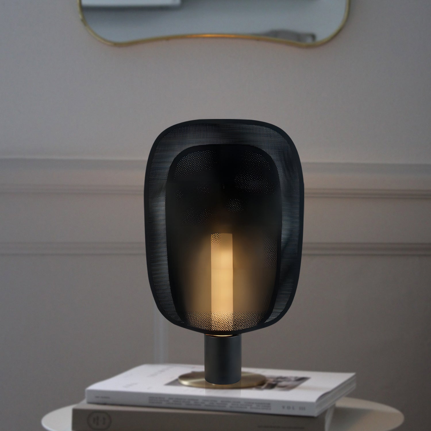The Vane Table Lamp features a perforated shade with a rounded rectangular form, paired with a cylindrical base. Its compact size makes it suitable for desks, side tables, or shelves. It provides focused lighting while adding a subtle design element to your space.